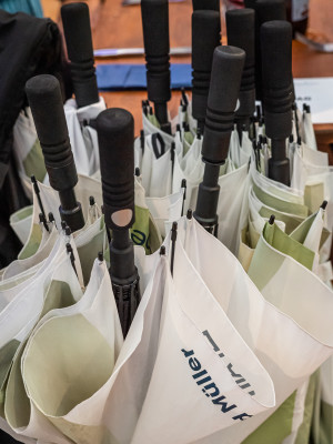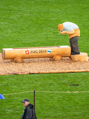 Es regnete nur einmal am Dienstag – doch alle Mitarbeitenden waren sich einig: besser jetzt als am Wochenende! Mit Alfred Müller-Schirmen ausgerüstet, machten sie sich auf den Weg zum Festgelände, wo sie beim Pulverhüsli erwartet und in eines der Festzelte begleitet wurden. Dort brachte ihnen Reto Arnold den Schwingsport näher, damit sich die Laien im Publikum am Wochenende keine Blösse geben: «Wer beim Schwingsport von unentschieden anstatt von gestellt spricht, zeigt, dass er wenig Ahnung hat…»