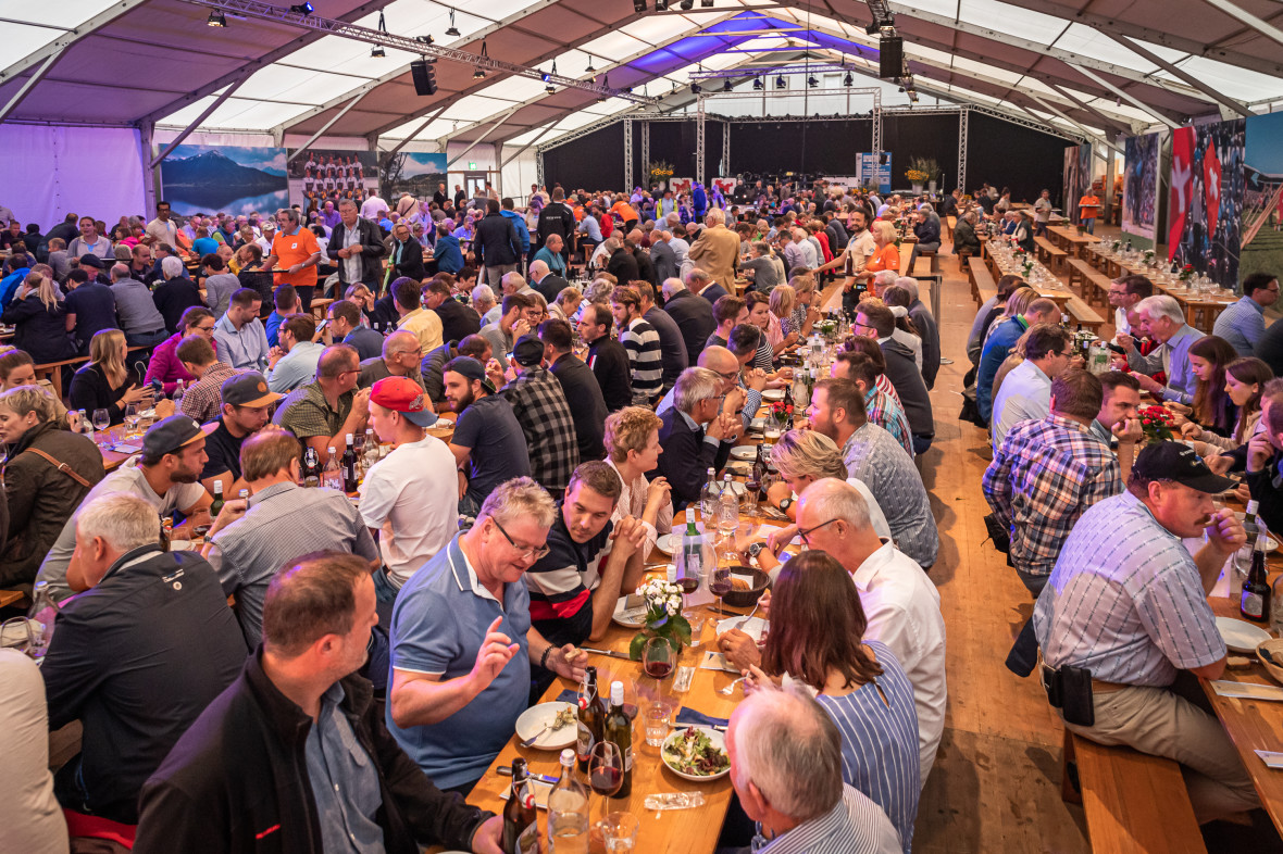 Auf dem Rundgang und anschliessend beim feinen Nachtessen in der Gabenbeiz stimmten sich die Mitarbeitenden auf das ESAF ein – die meisten von ihnen werden die Gelegenheit haben, in der Arena die Wettkämpfe live mitzuerleben. Am diesjährigen Geschäftsessen hat die Alfred Müller AG rund 200 Tickets unter den Mitarbeitenden verlost.