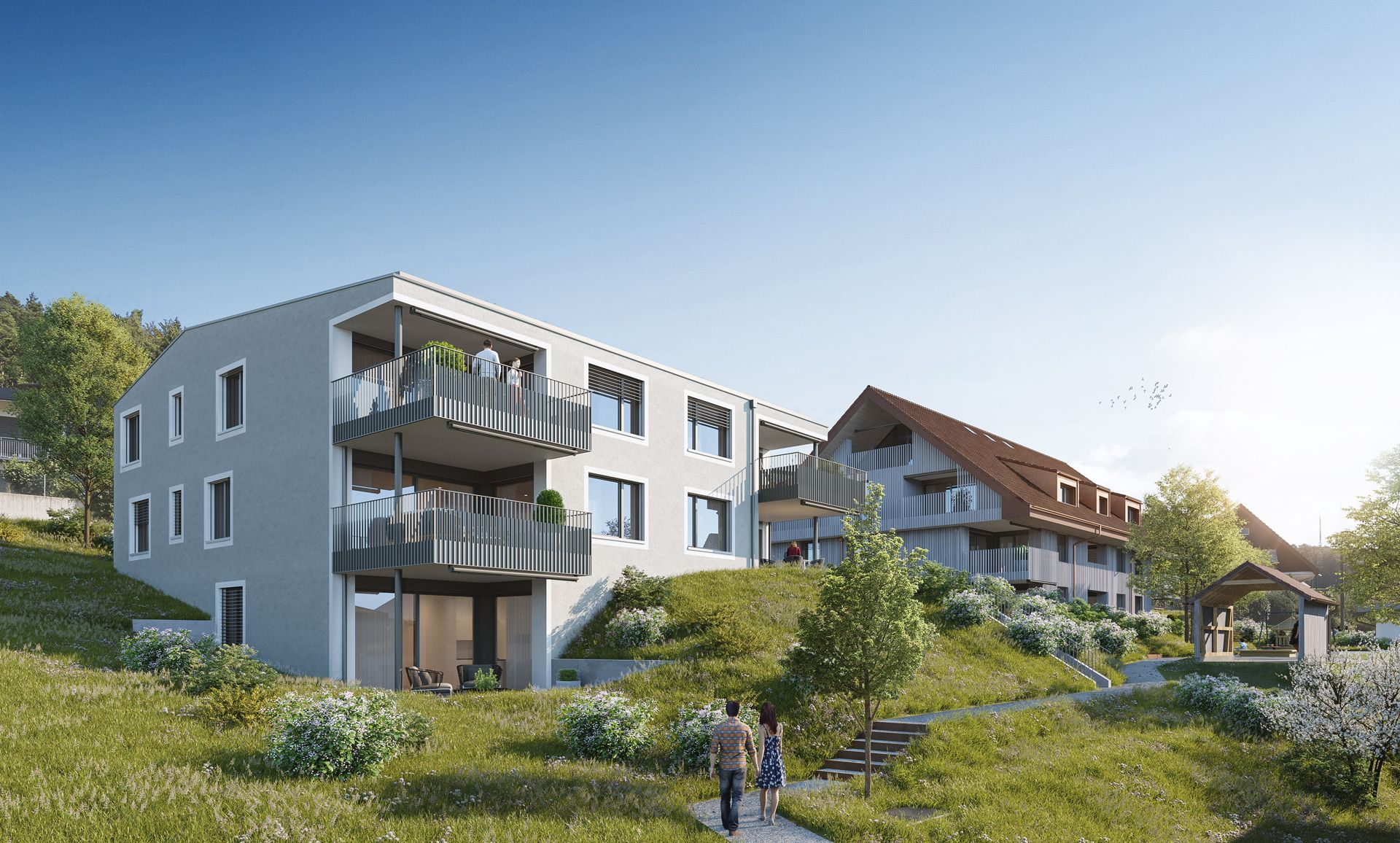 Alle Wohneinheiten weisen durchdachte Grundrisse, offene Wohnräume sowie gut möblierbare Zimmer auf und erfüllen somit hohe Ansprüche an ein komfortables Zuhause. Ausserdem verfügt jedes Eigenheim über einen Gartensitzplatz mit eigenem Rasen oder einen Balkon, teilweise mit wunderschönem Blick bis zu den Zentralschweizer Alpen. Zwischen den vier Gebäuden wird sich die sorgfältig gestaltete Umgebung erstrecken. Zu ihr gehören eine geräumige Grünfläche mit einem offenen Pavillon und ein Spielplatz.