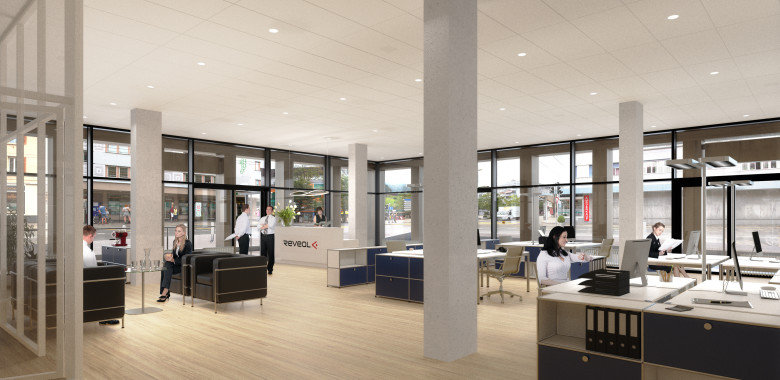 Die Alfred Müller AG bietet im Erdgeschoss drei Dienstleistungs-/Ladenflächen mit 187 m², 312 m² und 316 m² an, welche bei Bedarf unterteilt werden könnten. Die Mietflächen eignen sich zum Beispiel für Fachgeschäfte, Agenturen, Praxen und Büros. In den Obergeschossen werden insgesamt 1 188 m² Büroflächen bereitgestellt, wovon 318 m² im 1. Obergeschoss und je 435 m² im 4. und 5. Obergeschoss angeordnet sind.