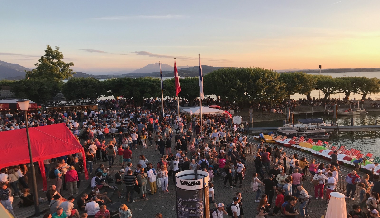 Wie jedes Jahr erwartet die Zuschauer auch 2019 ein vielfältiges Programm: Entlang der Seepromenade werden verschiedene Stände und Beizen die Besucher mit einem reichen kulinarischen Angebot verwöhnen. Die Flugshow findet am Samstag um 17.30 Uhr über dem Zugersee statt, wird live vom Boden aus kommentiert und bietet Zuschaltungen ins Cockpit. Den zweiten Höhepunkt bildet wie immer das Feuerwerk um 22.30 Uhr. Bereits ab Festbeginn um 16.00 Uhr können die Besucher in verschiedene Musikwelten eintauchen. Viele bekannte Bands bieten bis spät in die Nacht hinein ein abwechslungsreiches Programm von Rock über Pop bis hin zu Retro und Schlager.