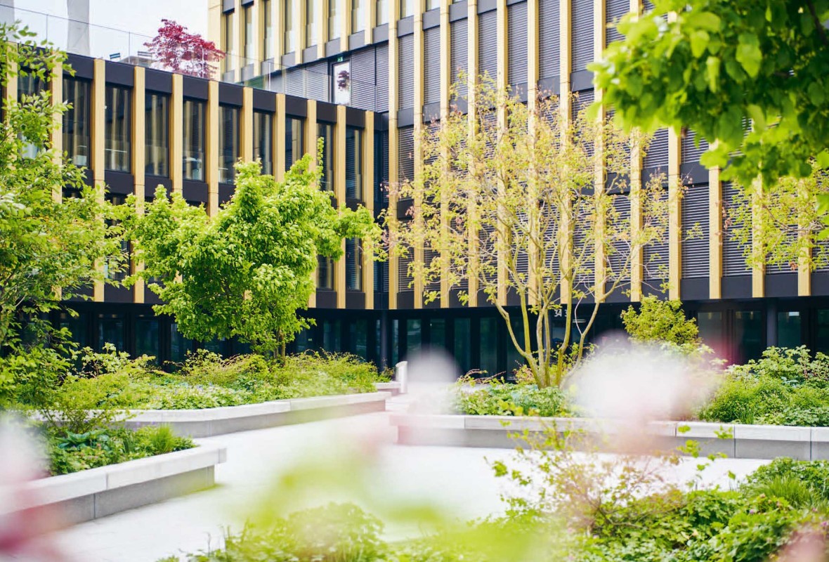Da sich ja bereits die Aussicht auf Pflanzen aus dem Inneren des Gebäudes positiv auf Menschen auswirkt, stellen grüne Aussenräume ein wichtiges Wohlfühlelement dar. Für die Aufenthaltsqualität in grünen Aussenräumen lässt es sich ähnlich argumentieren wie im Innenraum. Aussen wie innen – Pflanzen schaffen ein angenehmes Ambiente: als Treffpunkte, aber auch zum Arbeiten. Man kann mit Pflanzen zum Beispiel hervorragend Nischen kreieren, in denen Gruppen oder kleine Teams zusammenarbeiten können.