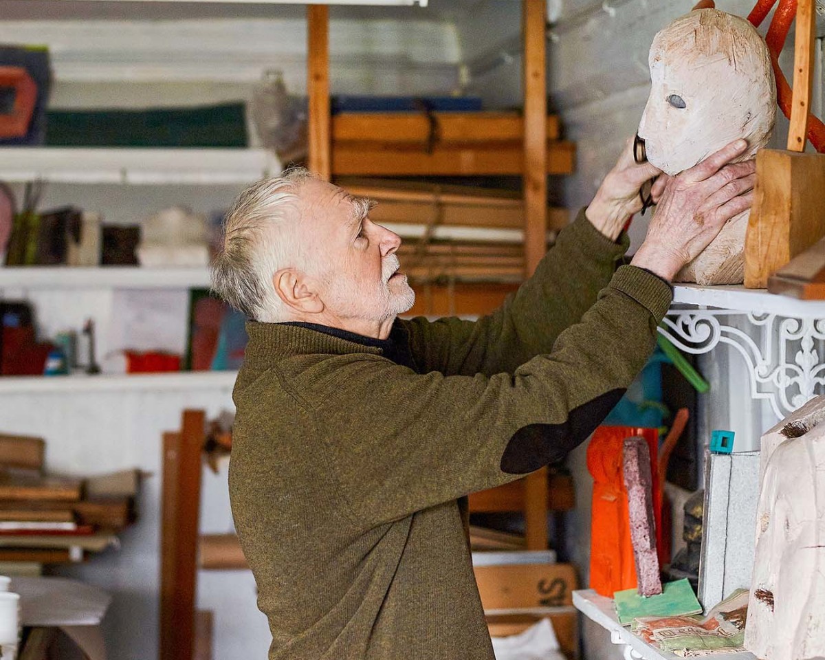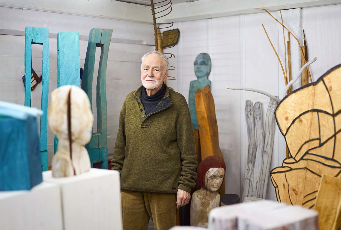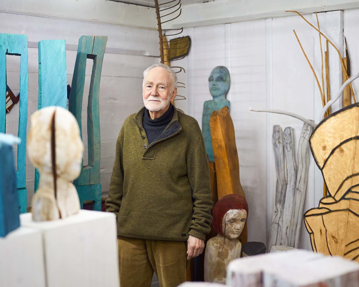 Im Zimmer nebenan stapelt sich Kunst aus verschiedensten Abschnitten seines Schaffens, von frühen Gemälden bis zu jungen Skulpturen. Im Laufe der Jahre kam Norbert Stocker von der Malerei zur Arbeit mit Holz. «Holz hat mich immer fasziniert. Als Junge war ich gerne im Wald. Später hat mich Holz als Werkstoff interessiert», erzählt er. Der Grossteil des Holzes, das er für seine Arbeiten braucht, bezieht der 82-Jährige aus seinem privaten Wald im Tessin. Dort fällt er die Bäume für seine Kunst. «Es hat etwas Brutales, einen Baum zu fällen. Es ist ein Lebewesen. Das vergesse ich bei meiner Arbeit nie», so der Künstler. Die Geschichte eines Holzstücks nimmt er teilweise bewusst in seine Arbeit auf. «Manchmal lasse ich mich von der Form eines Stücks leiten. Manchmal will ich mich aber nicht darauf einlassen und forme es nach meinen Vorstellungen.»