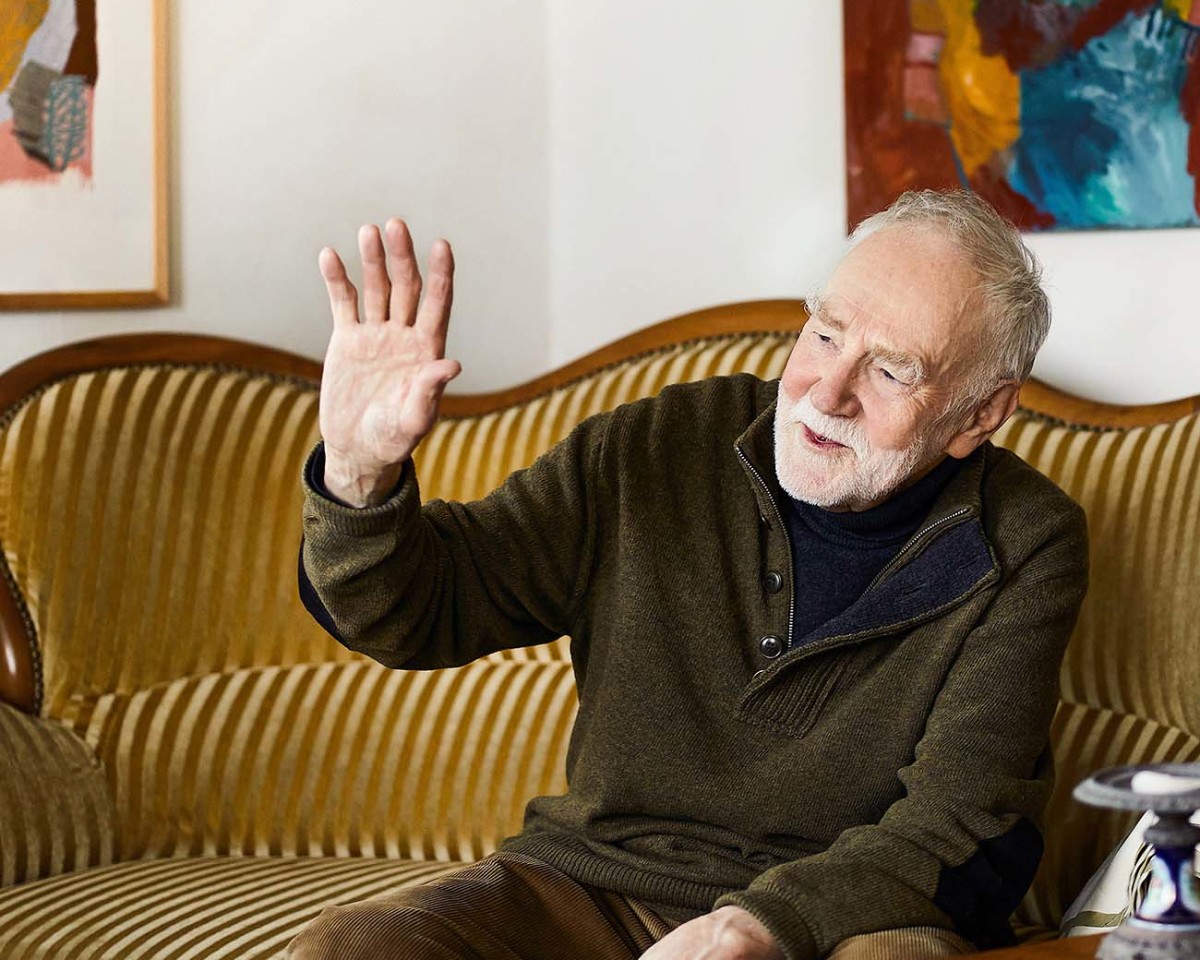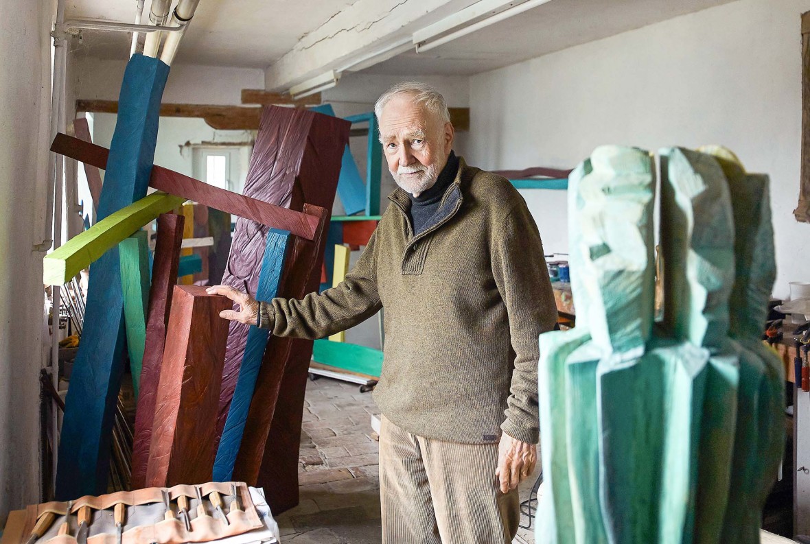 Norbert Stocker schweigt. Er denkt nach. Dann sagt er kopfschüttelnd: «Ich kann die Frage nicht beantworten, was Kunst ausmacht. Kunst ist kein Willensakt. Kein intellektueller Vorgang. Man kann Kunst nicht erklären.» Norbert Stocker ist 82 Jahre alt, lebt in Schwyz und ist Künstler. Seine Werke stehen in Gärten, Wohnungen, öffentlichen Gebäuden, Empfangsbereichen von Unternehmen und auch im Quadrolith der Alfred Müller AG. Stocker gestaltet Skulpturen aus Holz. Zum Unternehmen hat er eine familiäre Bande. Er ist der Bruder von Annaliese Müller-Stocker, der Frau des Firmengründers Alfred Müller. Abstrakte Gebilde, geometrische Konstruktionen, Frauenkörper, Köpfe, Gesichter. Er setzt Farben ein, schafft Abstraktes und Gegenständliches – und manchmal beides in einem. «Während meiner Ausbildungszeit in den 1960er-Jahren hiess es, die Zeit der gegenständlichen Kunst sei vorbei. Dann kam sie wieder auf. Ich lasse die Grenzen in meinen Arbeiten gerne verschwimmen.»