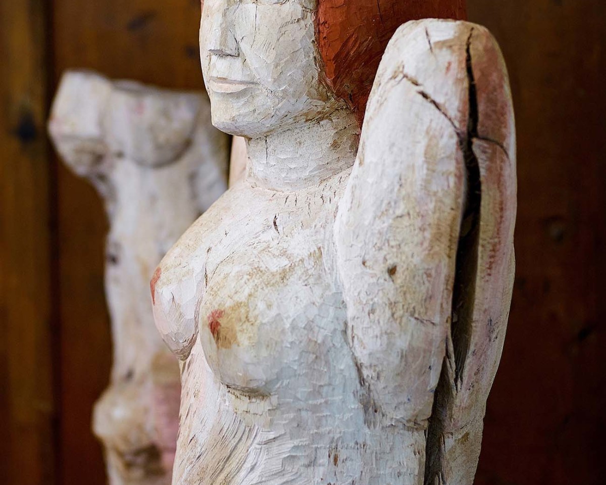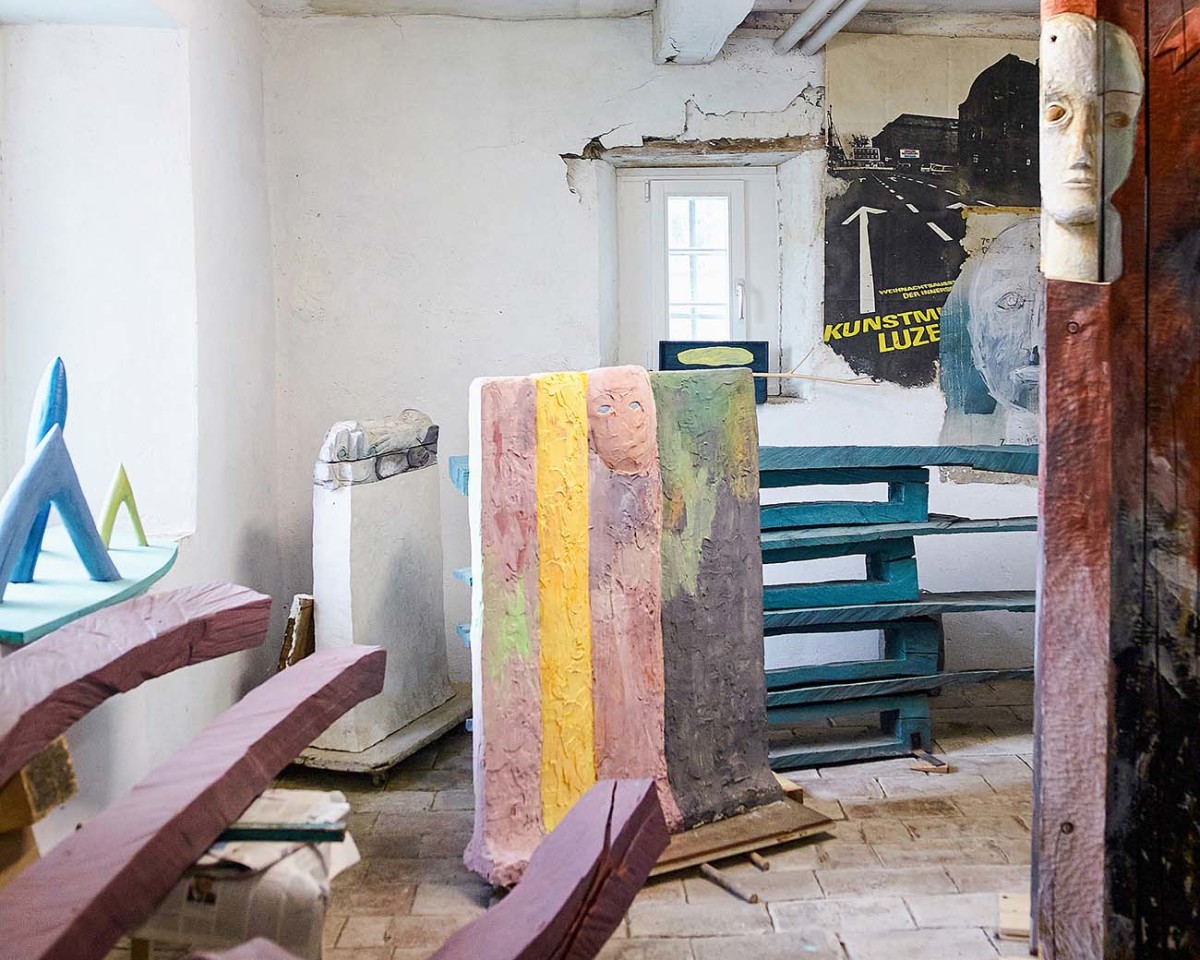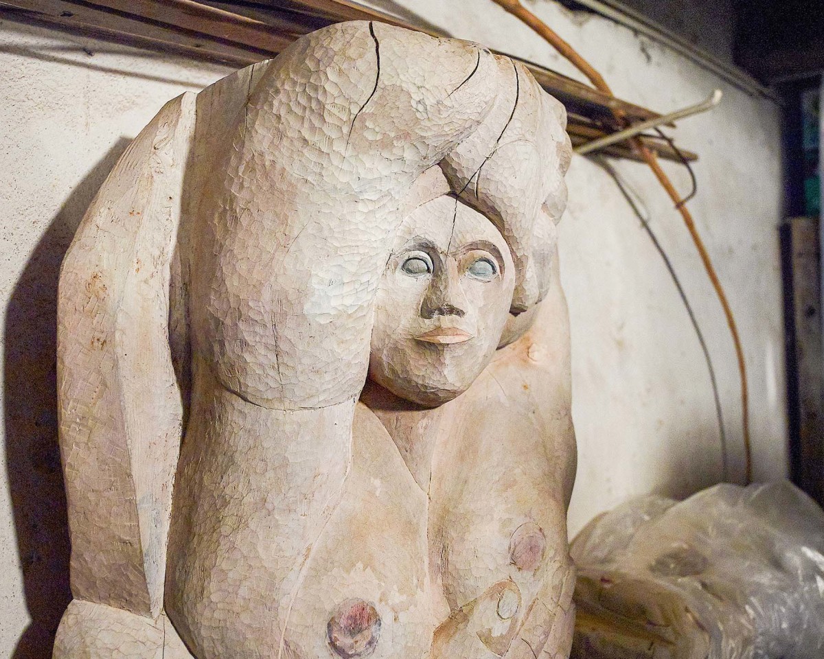 Die zweite Wirkungsstätte des Künstlers befindet sich im Keller des Hauses. Hier werden die groben Arbeiten vorgenommen. Im Raum liegen eine Motor- und eine Stichsäge, ein Beil, Feilen, Schnitzmesser. Die Werkbank ist voll mit Pinseln, Zeitungen, Farben. Individualität ist Norbert Stocker wichtig. Sie heute zu finden, sei aber schwierig. «Die meisten Menschen folgen am Ende doch einfach einer Strömung. Denn echte Individualität kann auch Angst machen. Sie erinnert uns daran, dass wir allein sind.»