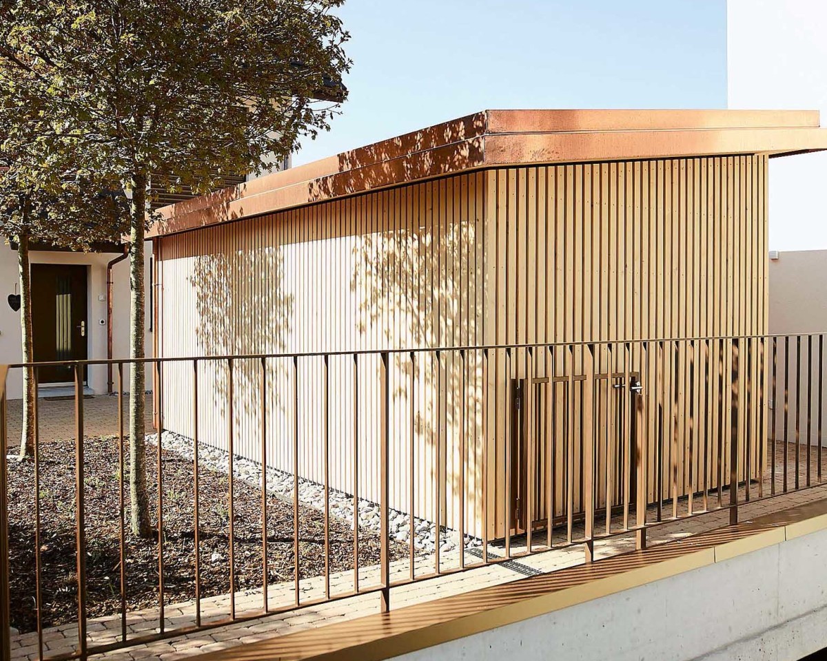 Heute ist von der Baustelle im letzten Jahr nichts mehr zu sehen, im Gegenteil: Wo noch vor ein paar Monaten schwere Maschinen grosse Erdmassen ausgehoben und massive Steine an die richtige Stelle gesetzt hatten, blüht es heute, wohin man schaut. Bei den Eingängen trägt der einheimische Feldahorn bereits saftige Blätter und spendet erfrischenden Schatten. Auf der kleinen Böschung gedeihen die Bodendecker und Gräser. Und für die Fläche zwischen den Sitzplätzen fiel die Wahl auf die ebenfalls einheimische Kornelkirsche als leichten Sichtschutz. Dieser wurde bewusst nicht als immergrüne Hecke konzipiert, denn man wollte grosse geschlossene Wände vermeiden. Mit der Kornelkirsche hat man eine verspielte Alternative gefunden, die alle Jahreszeiten im Garten erlebbar macht: mit Blüten im Frühjahr, gesundem Laub im Sommer und einer fröhlichen Färbung im Herbst.