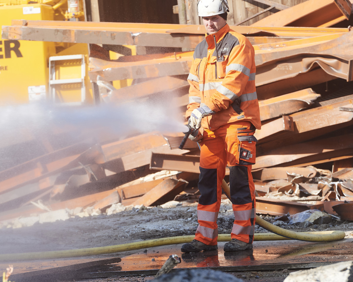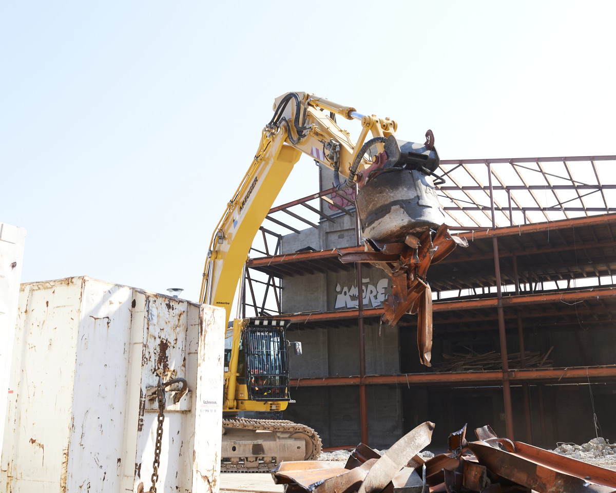 Die sechs Profis lassen nicht locker: Konzentriert sind sie am Werk bis die Dachaufbauten, Decken und Wände, Stahlträger und Armierungseisen sich in neuer Form auf getrennten Haufen türmen. Das Resultat nach zwei Wochen Rückbau: Insgesamt fallen 100 Tonnen Holz an, die teils zu Spanplatten verarbeitet werden können. Zudem stapeln sich 35 Tonnen Stahl, die sich ebenso vollumfänglich recyceln lassen wie die 150 Tonnen unbelasteten Betons. 105 m3 Mischabbruch aus verschiedenen Materialien werden entsorgt.