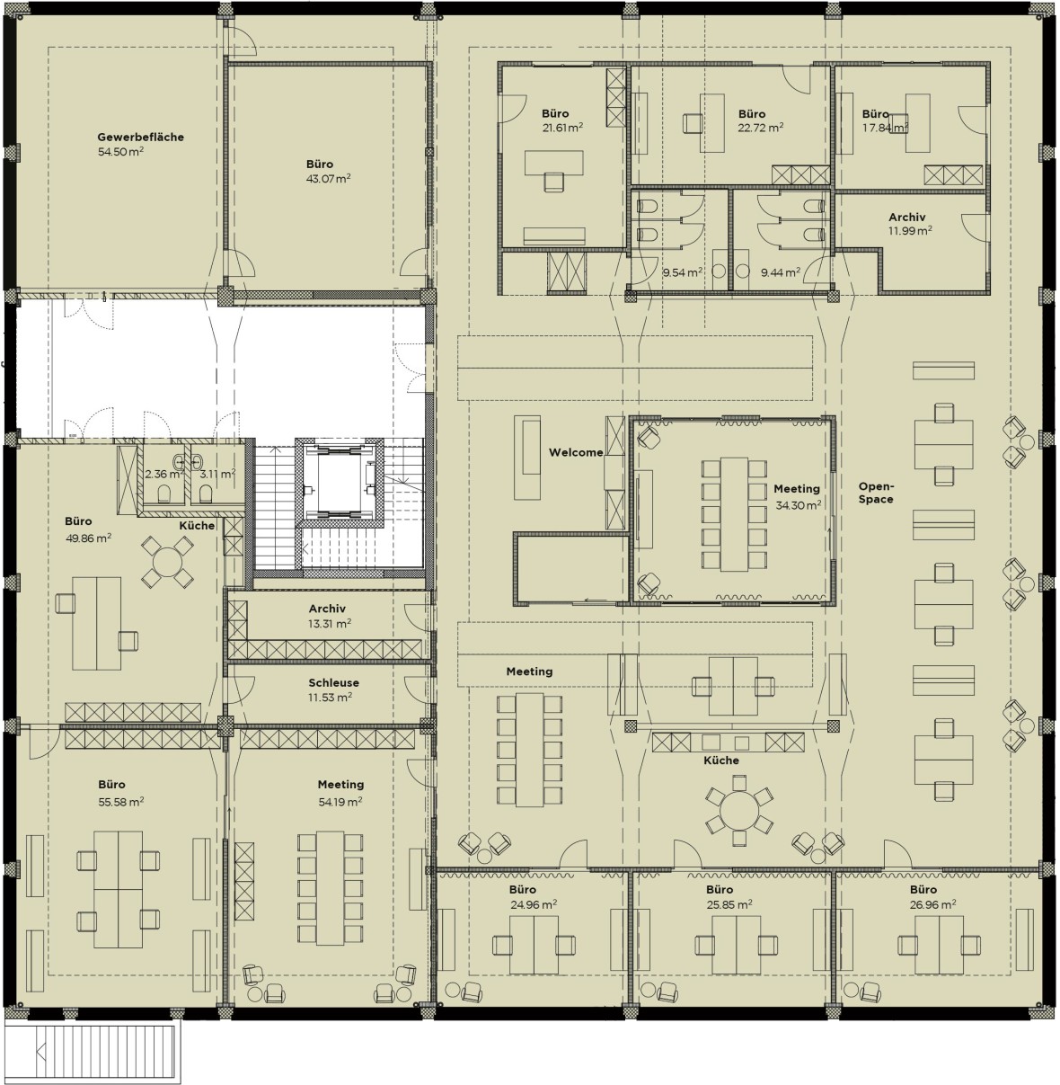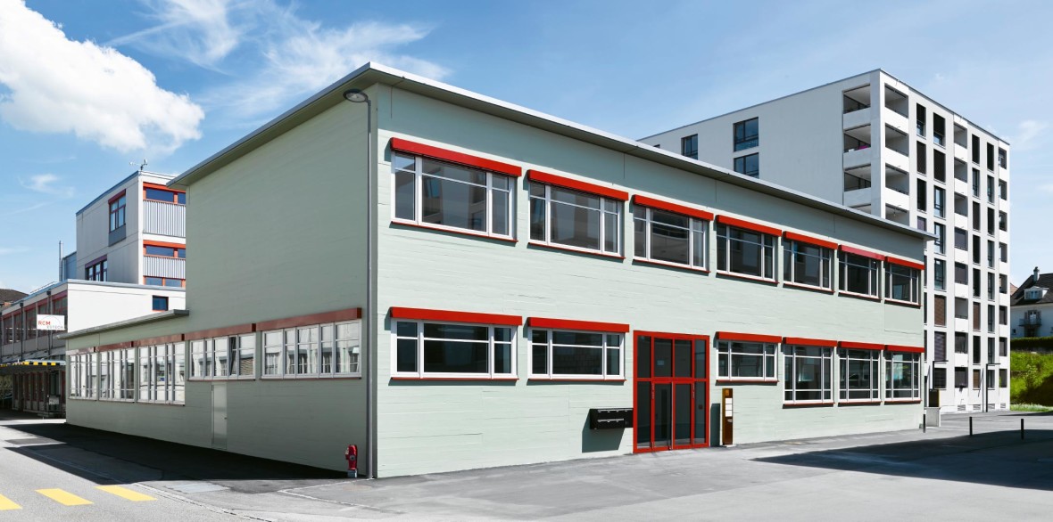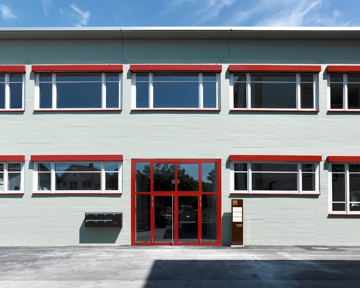 Der in der Höhe abgetreppte Flachbau gehört zum Entwicklungsgebiet Suttergut, das sich knapp fünf Gehminuten von Burgdorfs Bahnhof befindet. Jahrzehntelang produzierte hier die Firma Aebi & Co. AG ihre bekannten Landmaschinen. Die Alfred Müller AG hat auf dem westlichen Teil des Areals die Siedlung Wohnen und Arbeiten Suttergut realisiert, mit drei neuen Mehrfamilienhäusern, die über 100 Miet- und Eigentumswohnungen umfassen. Das Gebäude an der Lyssachstrasse 111 vervollständigt das Ensemble und bildet den Übergang zum Arealteil Suttergut Industrie. Der Betonskelettbau mit seiner nicht tragenden Sichtbetonfassade wurde nach Plänen des Büros Leutwyler Partner Architekten, Zürich, im Auftrag der Alfred Müller AG umfassend saniert und im Inneren komplett erneuert. Er beherbergt nun rund 1'200 Quadratmeter moderne Gewerberäume. Und wer durch die Lyssachstrasse spaziert, wird feststellen, dass das Gebäude noch so aussieht wie bisher.