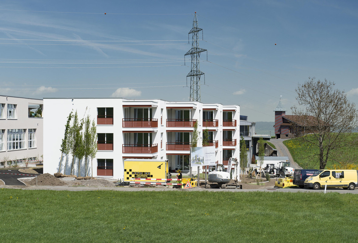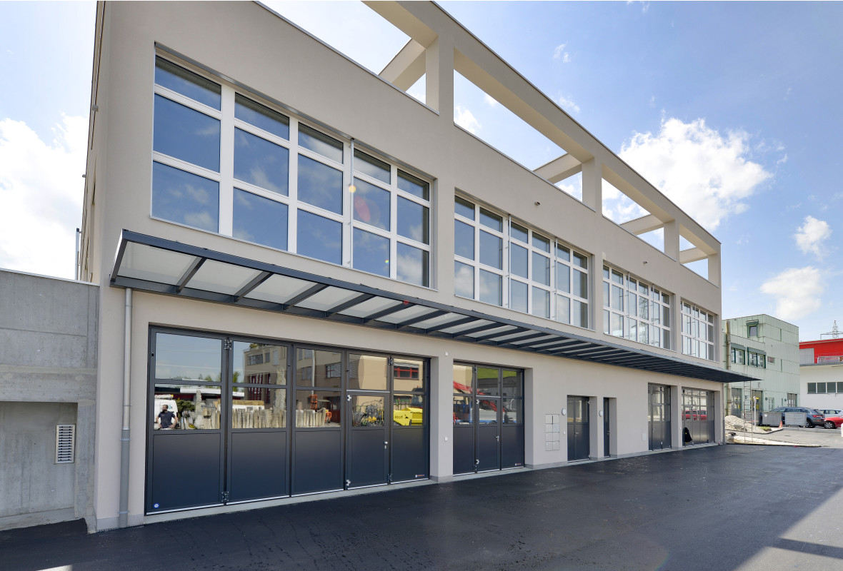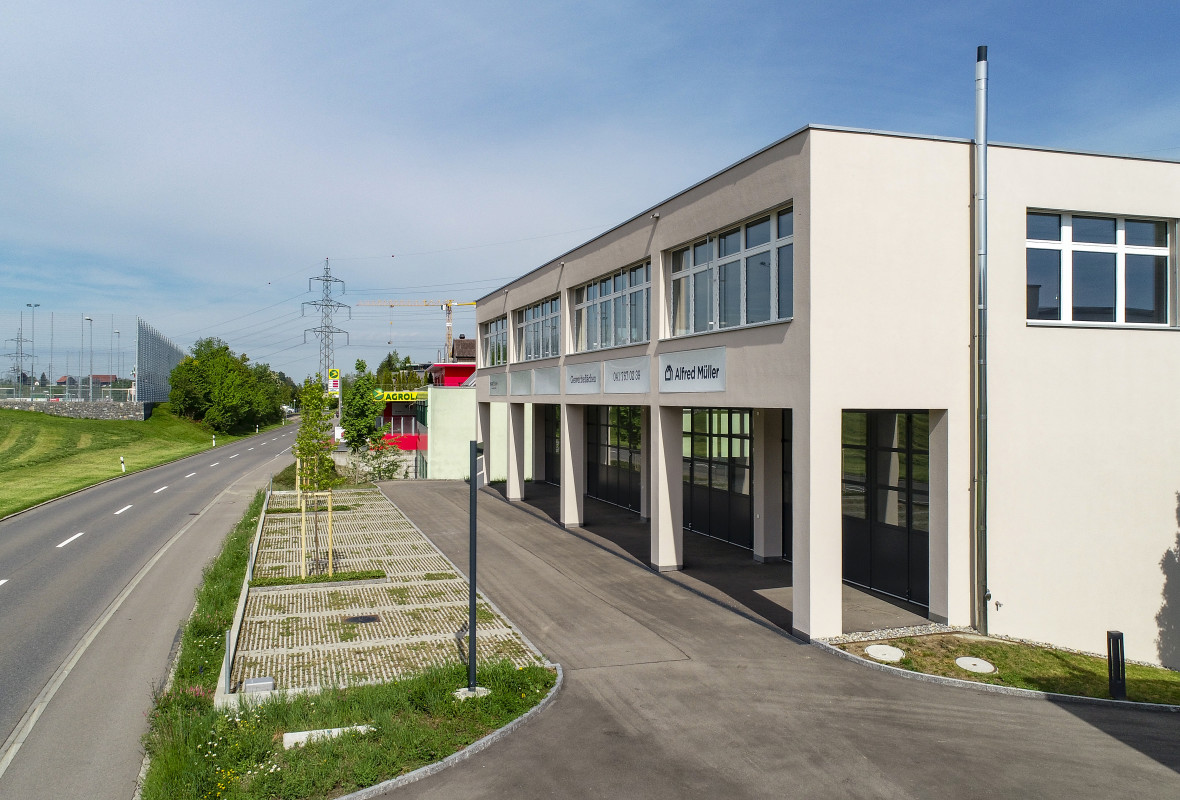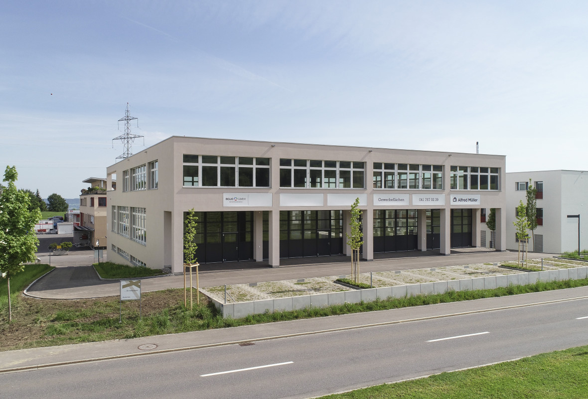 Die Wohn- Gewerbeüberbauung besteht aus zwei Gebäuden mit dazwischenliegender Austoeinstellhalle, einem 4-geschossigen Wohnhaus mit 13 preisgünstigen Mietwohnungen und einem 3-geschossigen Gerwerbegebäude mit rund 2 400 m² Nutzfläche.