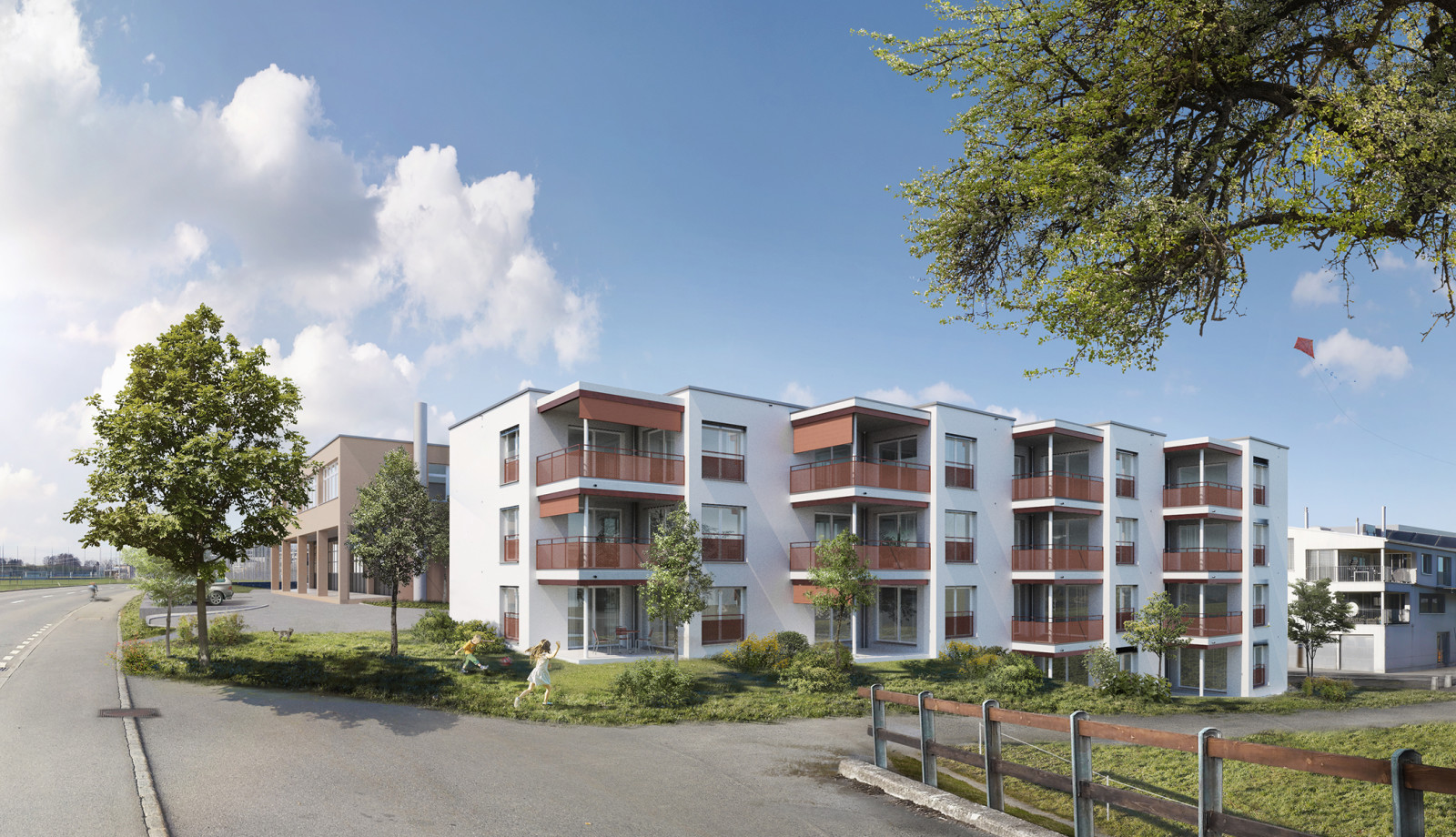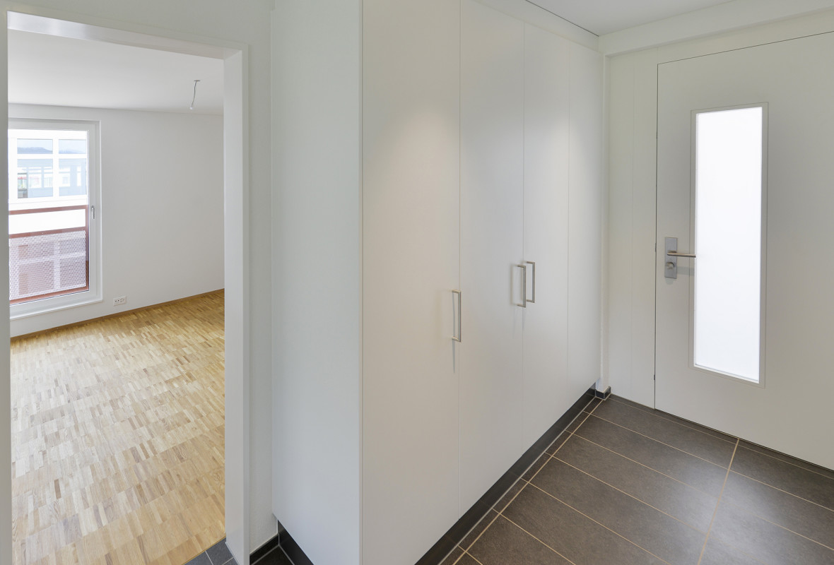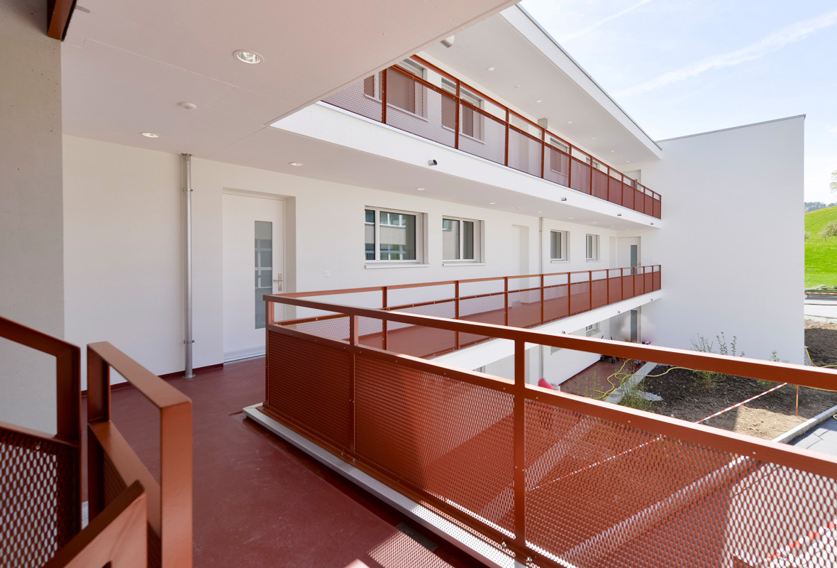 Die Wohn- Gewerbeüberbauung besteht aus zwei Gebäuden mit dazwischenliegender Austoeinstellhalle, einem 4-geschossigen Wohnhaus mit 13 preisgünstigen Mietwohnungen und einem 3-geschossigen Gerwerbegebäude mit rund 2 400 m² Nutzfläche.