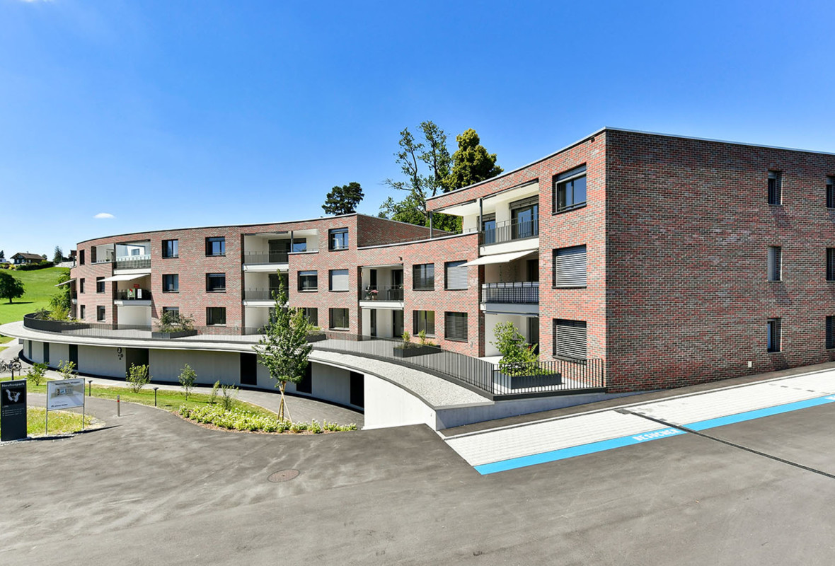 Der Neuhuspark Meggen liegt oberhalb des Ortszentrums auf einem kleinen Zwischenplateau, angrenzend an die Landwirtschaftszone und in Gehdistanz zum Meggerwald. Die gut besonnte, ruhige Wohnlage garantiert eine hohe Lebensqualität nahe der Natur und der pulsierenden Stadt Luzern. Die Wohnüberbauung besteht aus zwei Gebäuden mit insgesamt 38 Wohneinheiten mit 3.5 bis 5.5 Zimmern. Die dreigeschossigen Bauten treten mit ihrer geschwungenen Form und der rotbraunen, hochwertigen und unterhaltsarmen Klinkerfassade prominent in Erscheinung. Die Siedlung ist von einer grosszügigen, parkkähnliche Grünanlage umgeben.