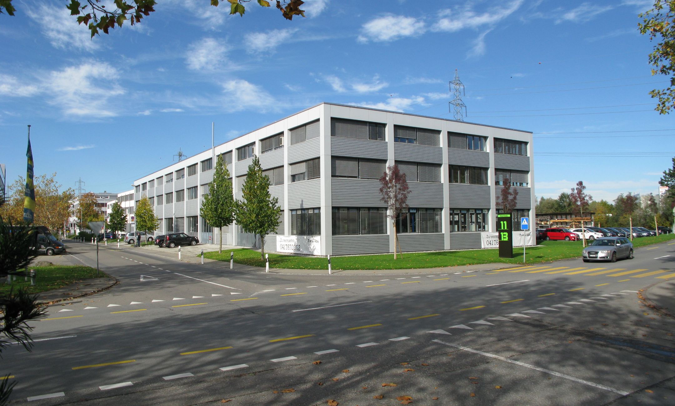 Am Stadtrand von Zug, unweit vom Autobahnanschluss und dem Einkaufzentrum Zugerland befindet sich das Gewerbehaus Riedstrasse 11/13.