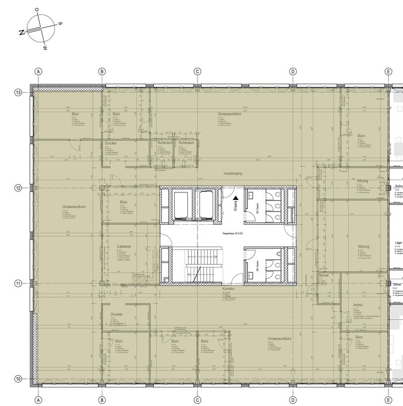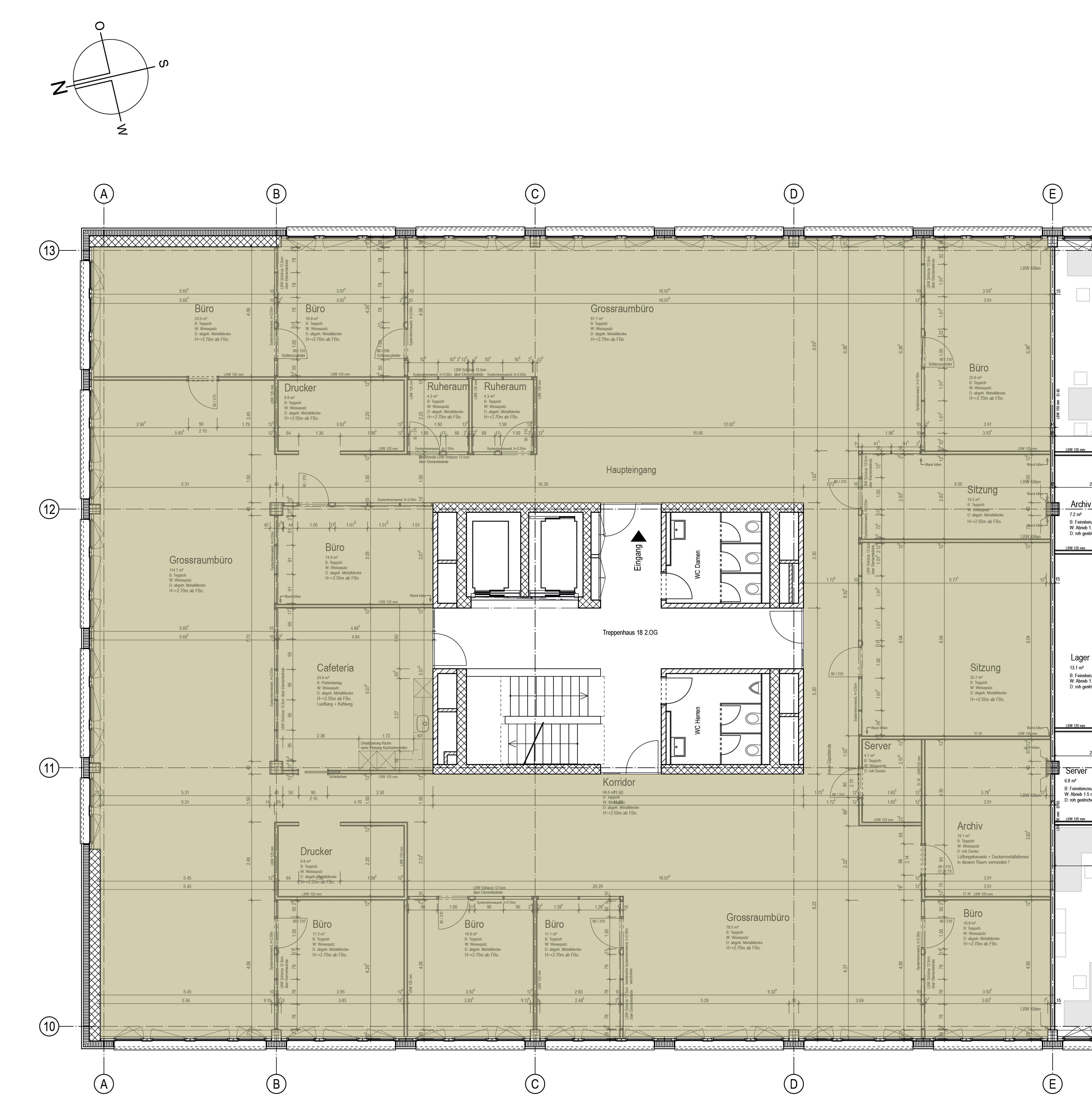 Bestehender Innenausbau 664 m² Bürofläche im 2. Obergeschoss