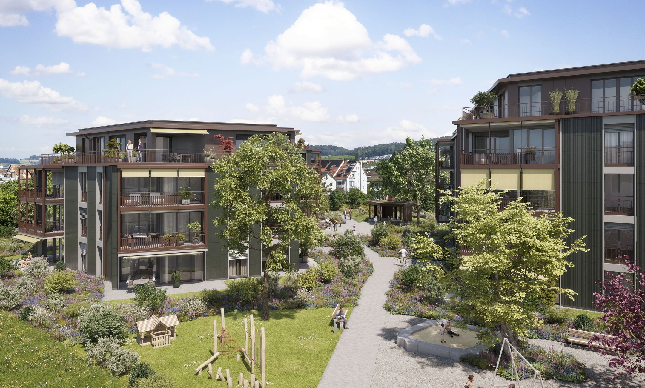 In drei energieeffizienten Mehrfamilienhäusern entstehen 35 variantenreiche 2.5- bis 6.5-Zimmerwohnungen. Unser Angebot umfasst gemütliche Gartenwohnungen mit Sitzplatz und eigener Rasenfläche, sonnige Etagenwohnungen mit grossen Balkonen und traumhafte Attikawohnungen mit weitläufigen Terrassen. Alle Wohnungen bieten eine spannende Grundrissgestaltung mit guter Möblierbarkeit und einen modernen, geschmackvollen Innenausbau, der auch hohen Ansprüchen gerecht wird.