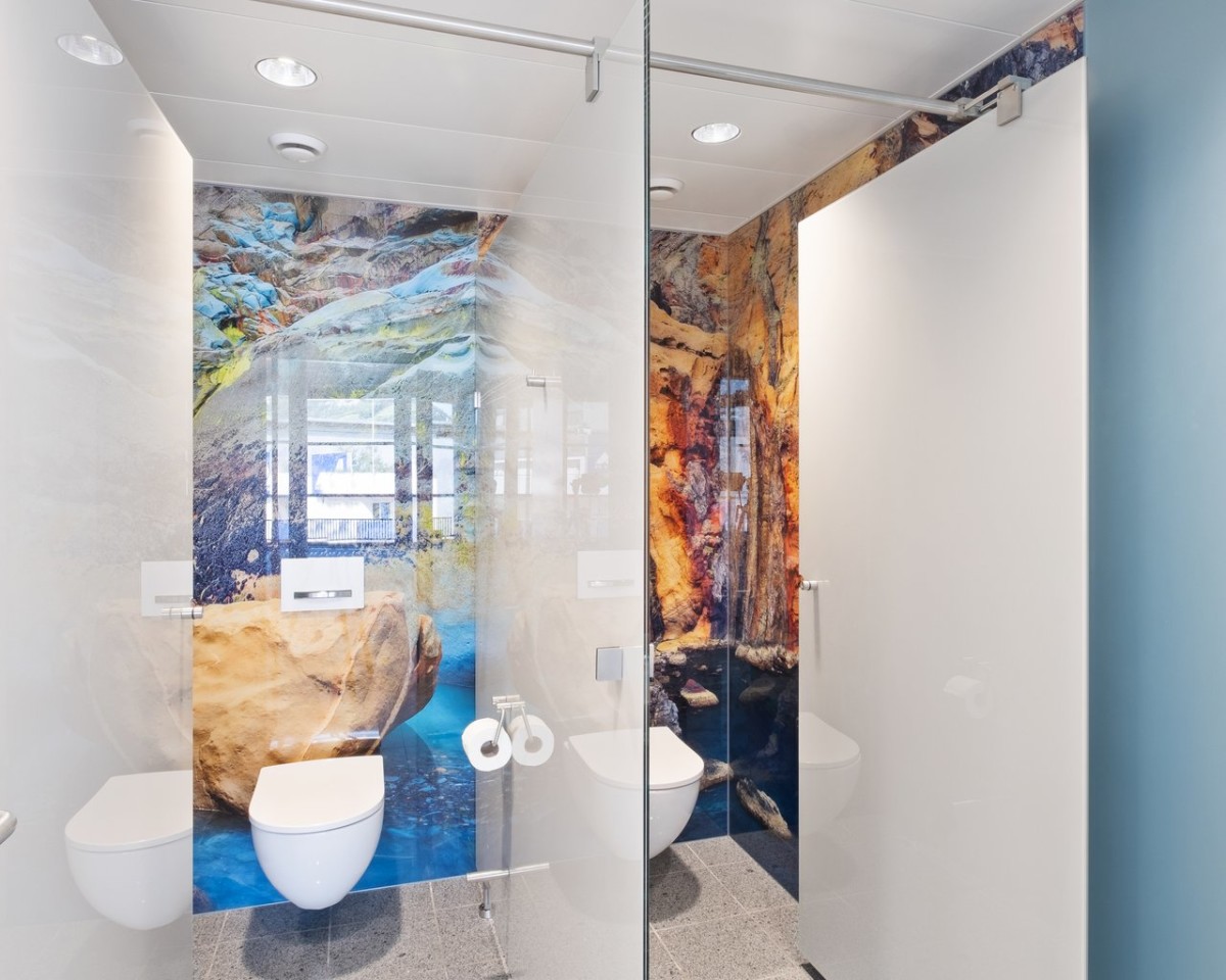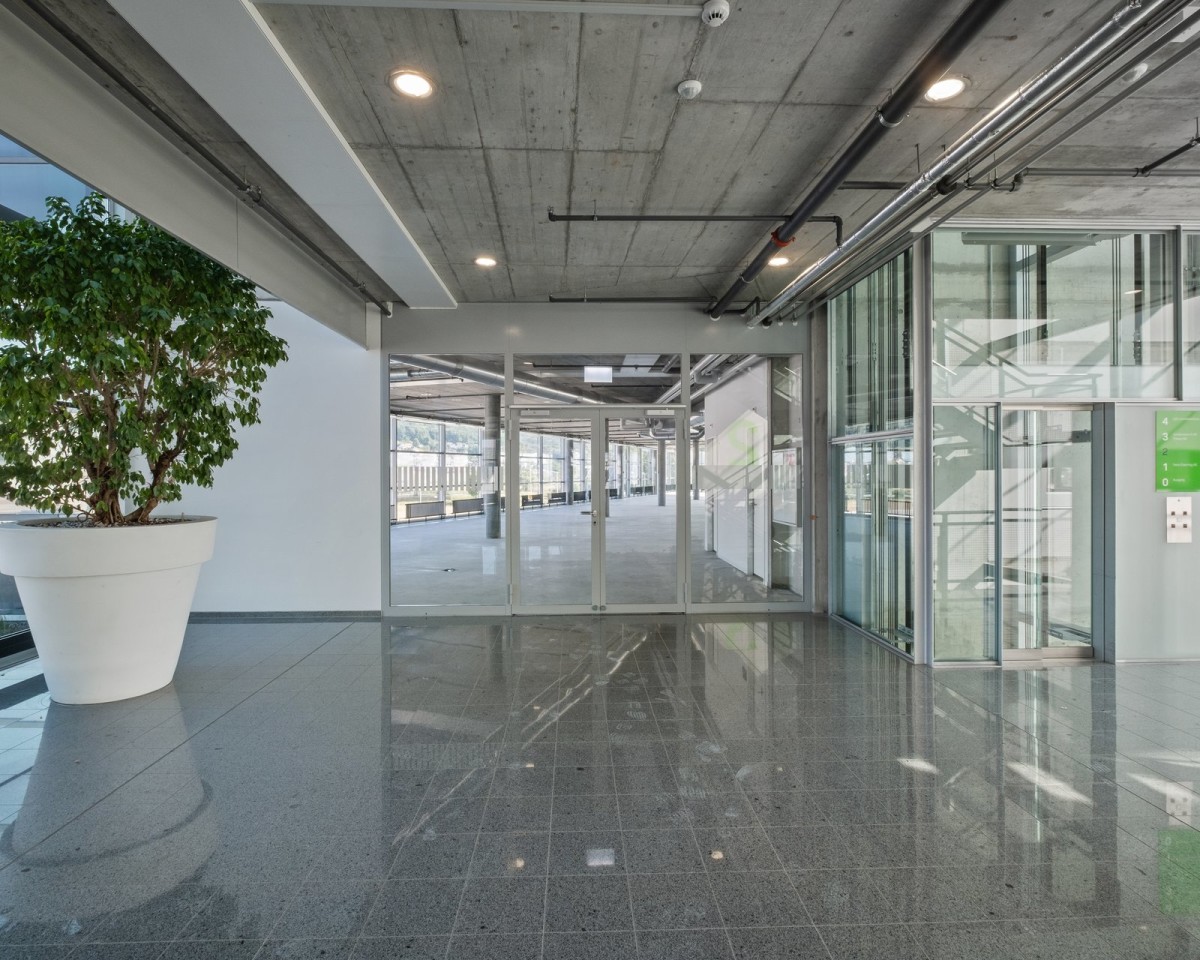 Die gelüfteten und gekühlten Räume bieten höchste Arbeitsplatzqualität. Die Glashülle sorgt für lichtdurchflutete Flächen und die geringe Raumtiefe stellt eine optimale Raumeffizienz sicher. Die bestehenden WC-Anlagen erübrigt Investitionen.