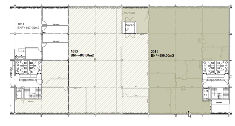 878 m² Geschäftsfläche mit Zugang zum Warenlift unterteilbar in 390 m² + 488 m²