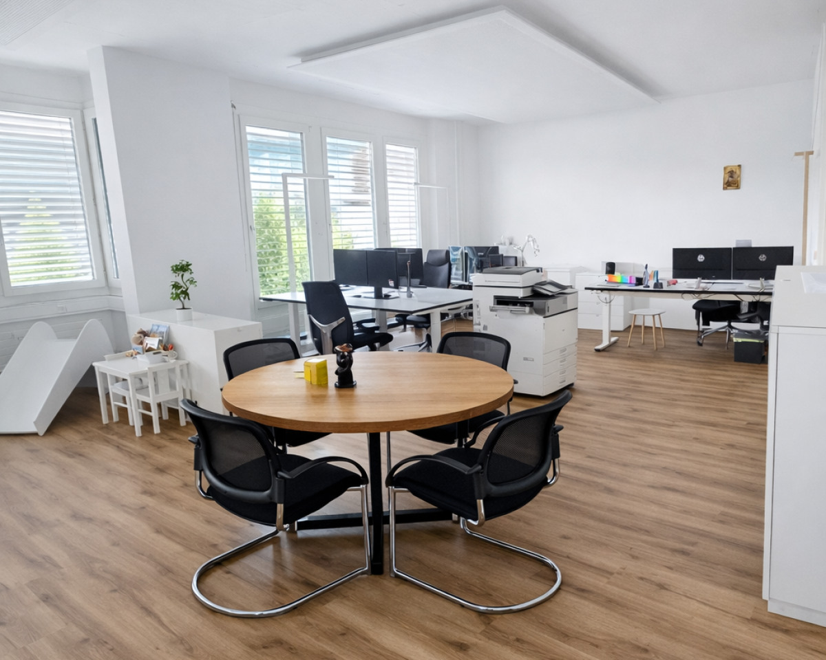 Die Bürofläche an der Bodenäckerstrasse 1+3 in Spreitenbach überzeugt durch eine helle, freundliche Atmosphäre und einen funktionalen Grundriss. Die rund 82 m² grosse Fläche im 3. Obergeschoss eignet sich ideal für Bürobetriebe, Dienstleister oder kreative Arbeitsformen.