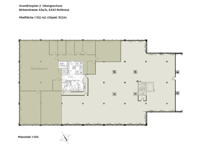 • Nutzfläche 1 512 m² im 2. Obergeschoss