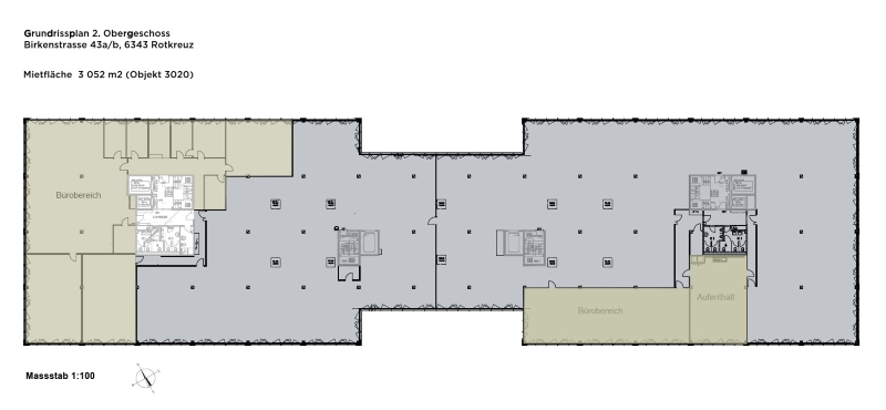 - Nutzfläche 3 052 m² im 2. Obergeschoss