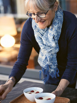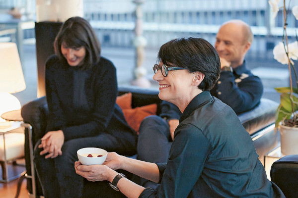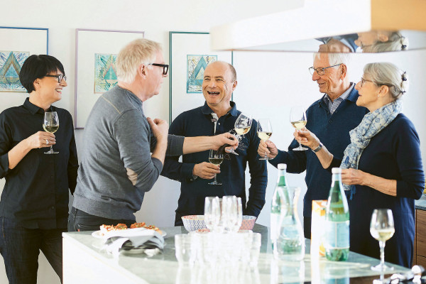 Iris serves dessert in her sofa corner: a creamy mousse made with apple and pear juice, apple tart, served with a dessert wine. The drink prompts the group to talk shop, and other topics of conversation carry them deep into the night. "You get to know each other from a lot of angles – the home, the food and the conversation. It's amazing," says Nicole. Claudia is enthusiastic as well: "The way everybody enjoyed themselves so much was great."