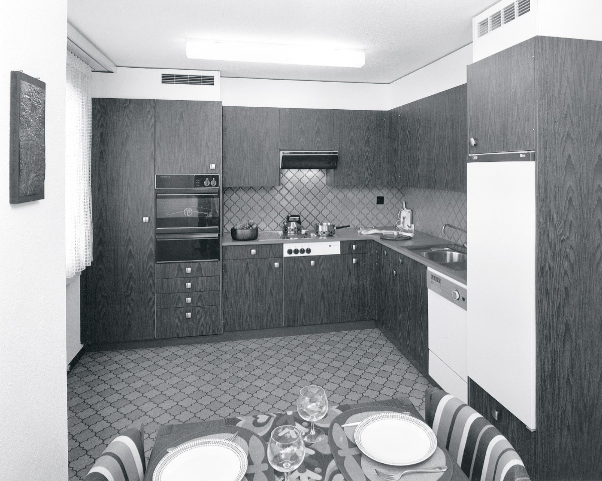 However, health risks were involved in spending extended periods in kitchens as they were plagued by several shortcomings: air circulation left much to be desired because there were practically no chimneys through which smoke and steam could escape. Soot settled in every nook and cranny, daylight was scant, and water had to be fetched from wells in buckets. The kitchen, as the “Historical Lexicon of Switzerland” infers, was a hotbed of disease. But in the late 19th century, undesirable germs were gradually eradicated as awareness of hygiene grew. From then on, walls were tiled, and fresh water came from the tap rather than the well. Further improvements in comfort arrived in the course of the 20th century – gas and electricity were installed and wood-burning “fire boxes” fell into disuse. The refrigerator became an integral feature and superseded the wooden ice box. Lastly, the development of independent heating systems meant that the kitchen could be separated from the living room.