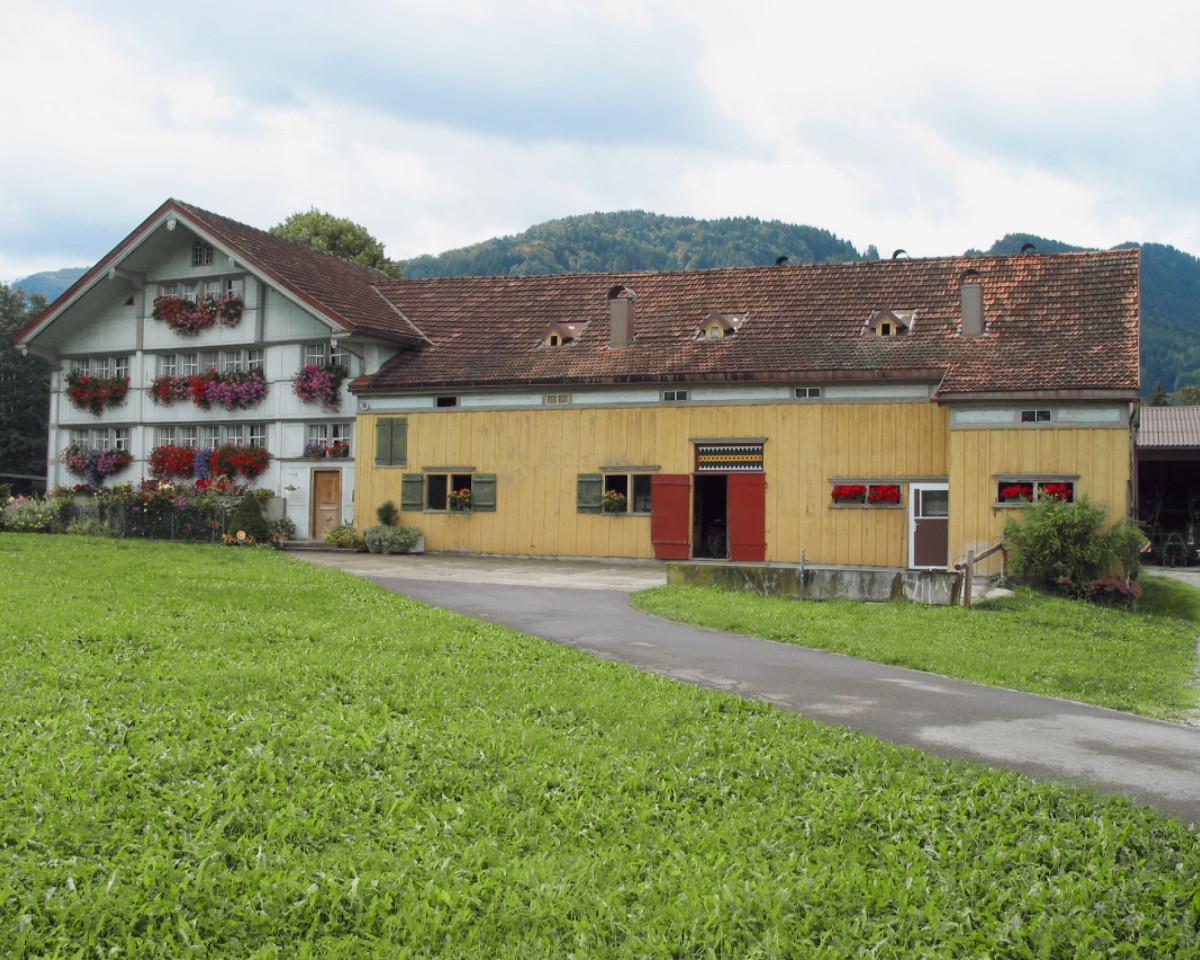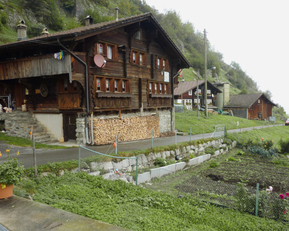 Diversity and distinct regional differences might sound very good, but is only partly true. These major distinctions were actually only seen in the 18th century. The further back one looks, the more similar the farmhouses are in their design and construction. The same applies to more recent times. The farmhouses built in Switzerland in the 19th and 20th centuries are all of very similar construction. I can start with typical regional farmhouses as a hypothesis, however: Engadin farmhouses typically have massive stone walls that are often decorated with sgraffiti, with barn and house connected by a large porch or by an antechamber called a “Sulèr”. In eastern Switzerland one often sees half-timbered houses, while stone construction dominates in western Switzerland and Ticino. In the country’s interior we have many wooden log houses with overhanging “Klebedach” roofs protecting rows of windows. A typical Emmental farmhouse in turn will have a long, hipped roof over the living area, threshing floor and stable. The house will often have an ornate gabled arch, known as a “Ründe”.