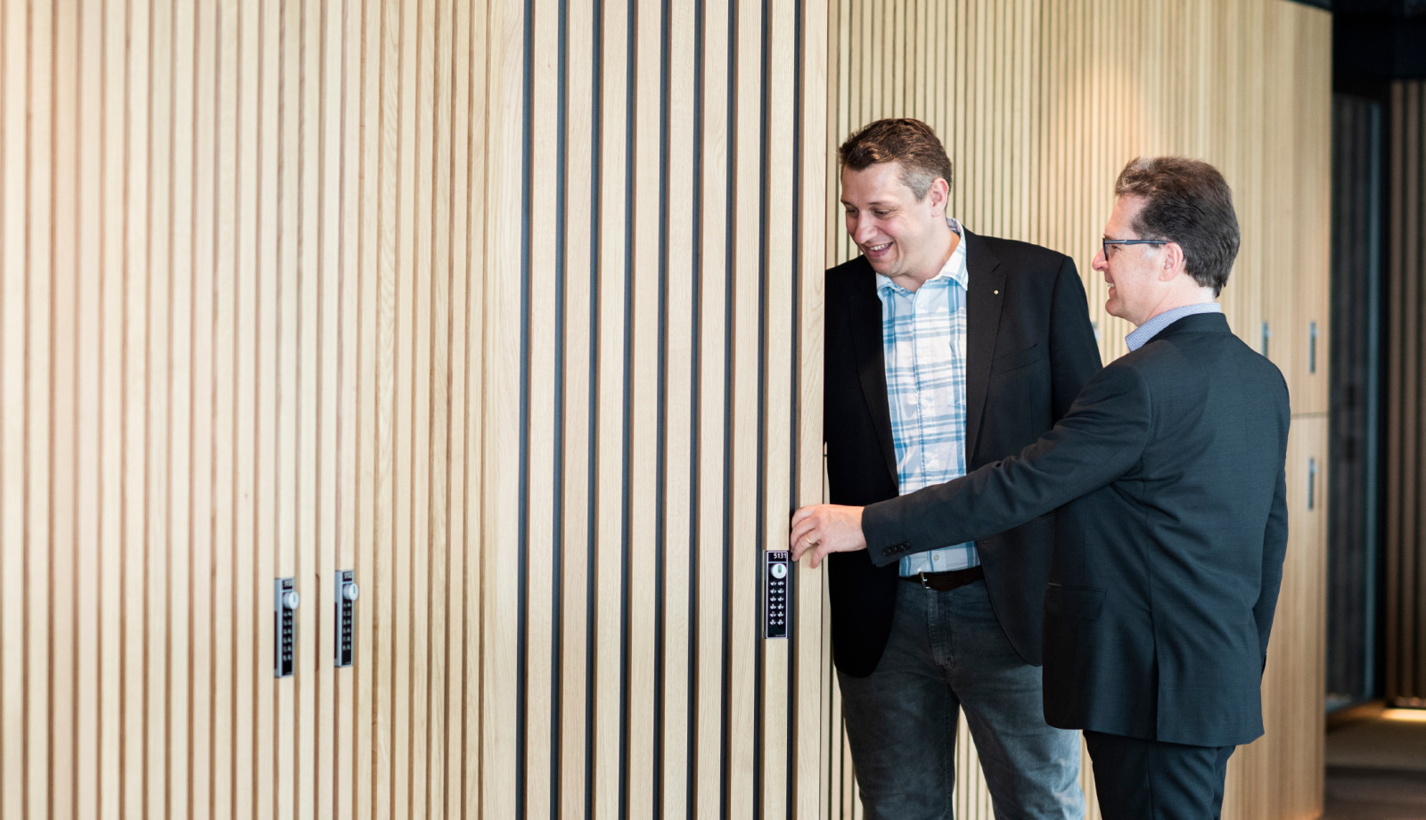 And last but not least, he is able to make use of his fame in business. “Above all, the initial contact with a customer is sometimes easier. Then we have to do a good job, just like all of our competitors,” he says with a grin. Interior work in furniture quality is the speciality of AAK/Holzmanufaktur – kitchens, fittings, doors, floors and special structures. Every job is welcome, though Jörg Abderhalden particularly likes complex assignments that challenge his staff. One example is the assignment that his company completed in 2018 for AstraZeneca in the Quadrolith office premises of Alfred Müller AG in Baar. “For AstraZeneca, we had to produce one large and several small kitchens and worktops, doors, as well as cladding with curves and glass inserts. That was very exciting.”