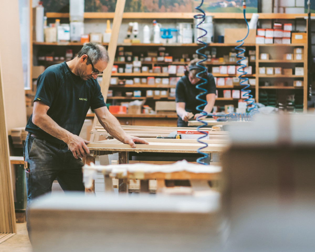 And it is this receptiveness for all that is new which makes Jörg Abderhalden stand out as a sportsman, entrepreneur and also as a private person. But the man from Toggenburg values traditions: “I find it important that people keep them going, but you should be flexible,” he claims. “I’ve always been fascinated by the mix of tradition and modernity. I practised a traditional sport but in a modern way.” He was one of the first people involved in Swiss wrestling to adopt professional training methods. “There’s room for new approaches,” is his clear view, whether it’s in sport, music or at work. At AAK/Holzmanufaktur the joiners are supported in their craftsmanship by new machinery.