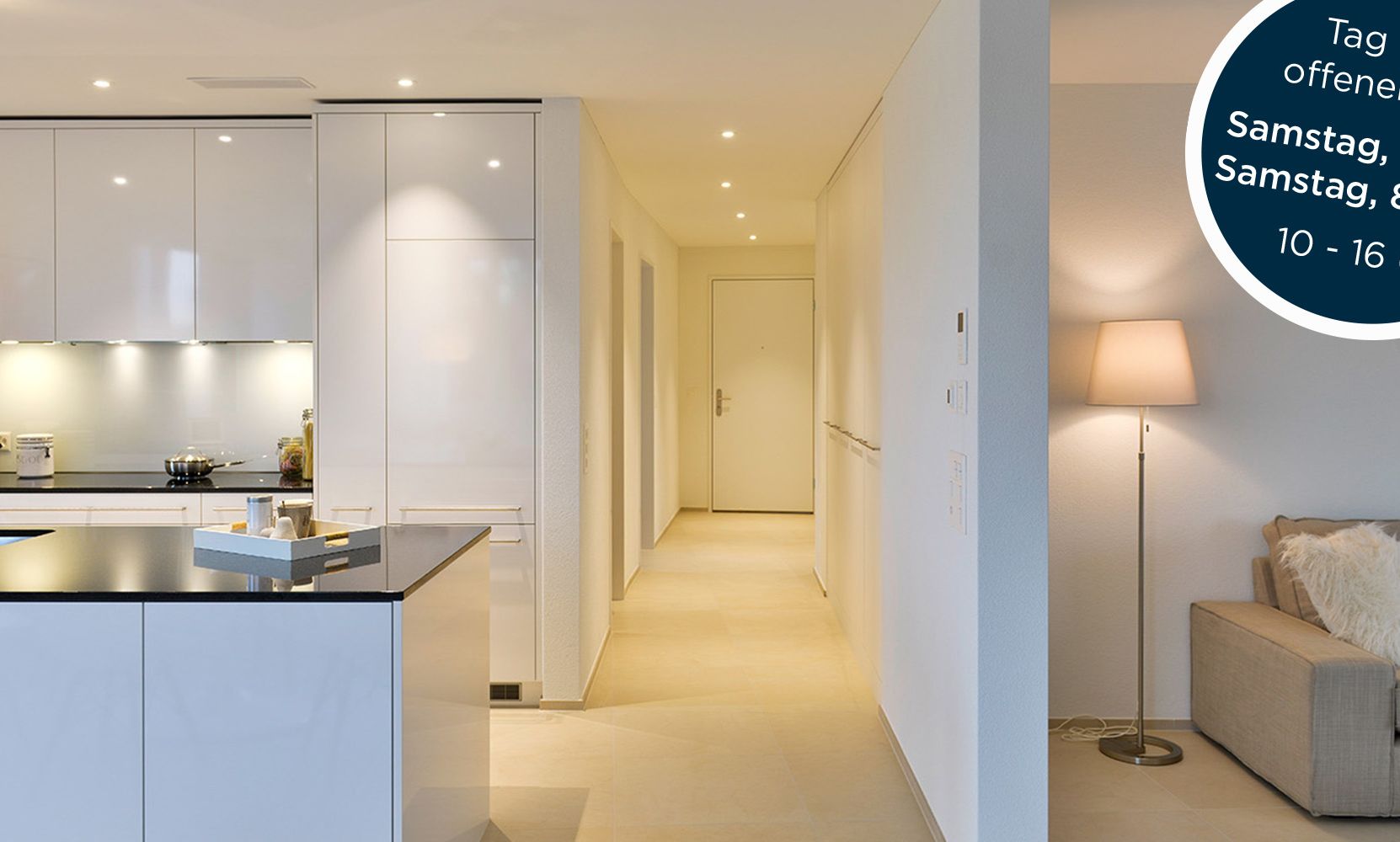 Am Samstag, 01.04.2017 sowie 08.04.2017, findet jeweils von 10 bis 16 Uhr ein Tag der offenen Tür statt. Besichtigen Sie unsere Musterwohnungen im Haus 6 und 7 in der Überbauung Neuhuspark Meggen.