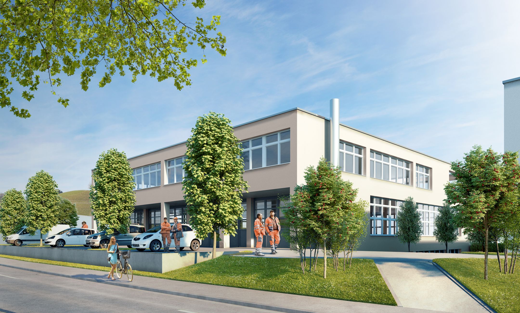 Das Gewerbehaus entsteht am östlichen Dorfrand im Gebiet Chrüzegg, zwischen der Industrie- und Neudorfstrasse. Insgesamt werden etwa 2300 m² Gewerbefläche bereitgestellt, die über drei Geschosse verteilt sind.