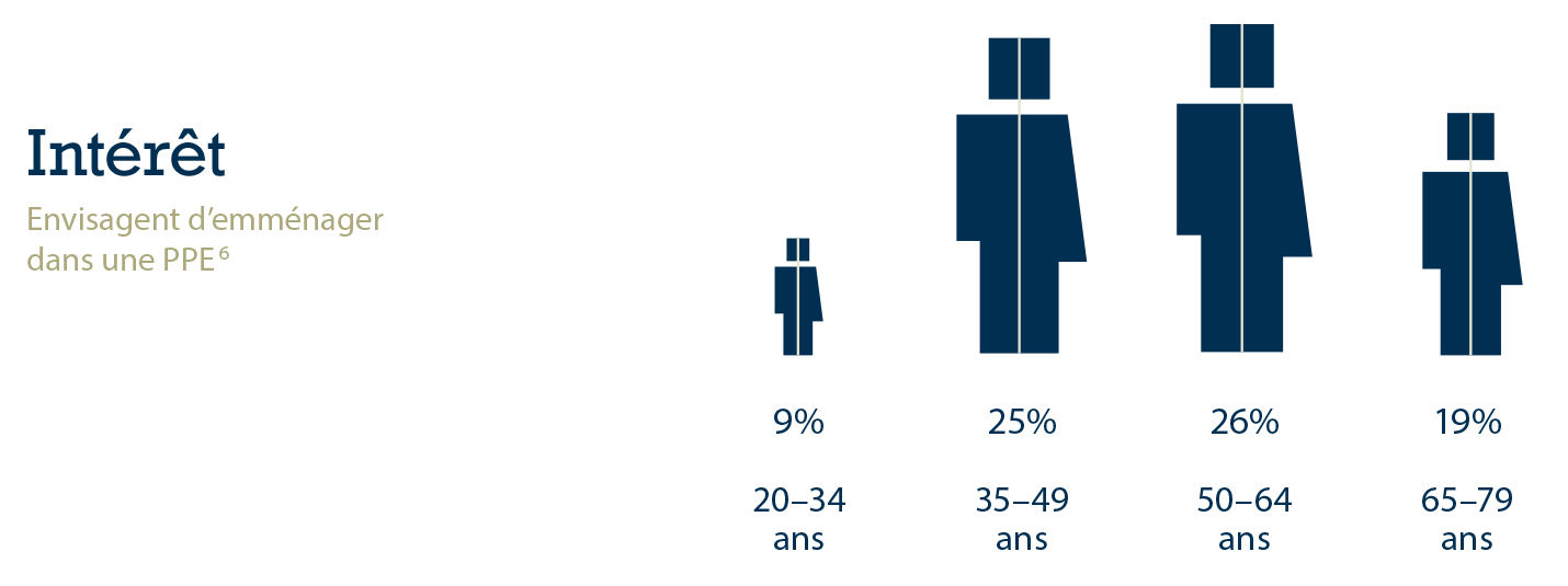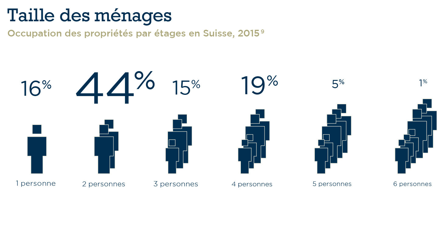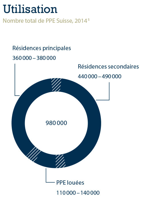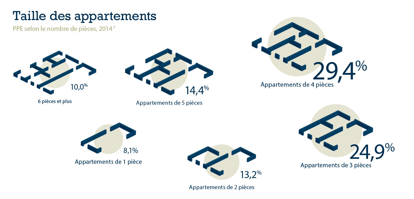 Ci-dessous, nous vous présentons divers faits et chiffres autour du thème de la propriété par étages à l’aide d’infographies. Combien de PPE sont-elles par exemple utilisées en résidences secondaires? A quel âge les gens s’intéressent-ils le plus à ce type de propriété? Combien de pièces recherchent-ils?