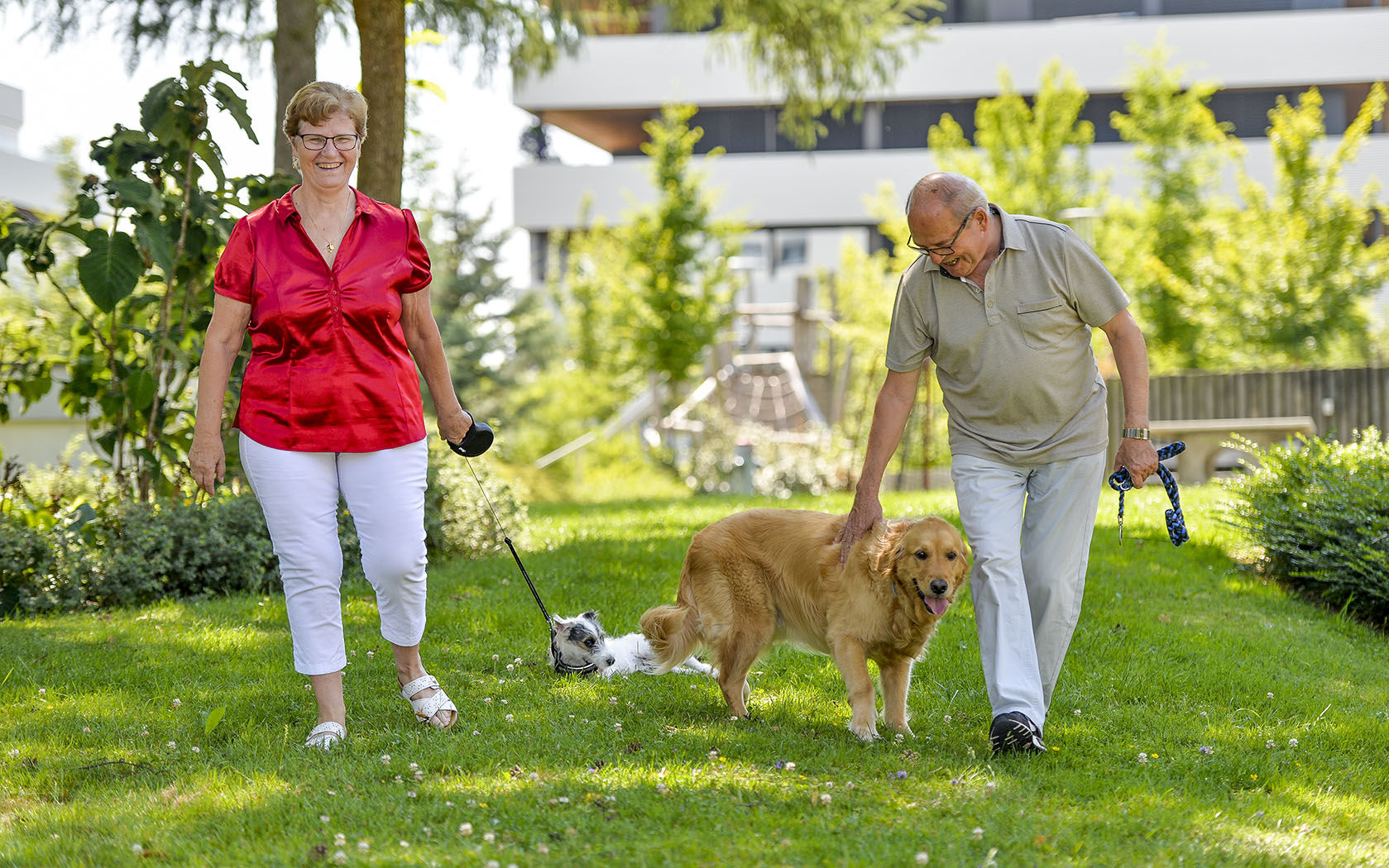 Aujourd’hui, les Meier mènent une retraite active, et leurs deux agendas sont bien remplis! Leurs trois enfants adultes et leurs six petits-enfants, en partie déjà adultes également, viennent volontiers leur rendre visite. De plus, Alfred Meier fait partie du comité d’organisation d’une association de contemporains et représente les copropriétaires vis-à-vis de la gérance d’immeubles. Ils entretiennent tous deux leur parcelle de jardin, c’est leur hobby commun. Ensemble, ils ont également passé le brevet de chien d’accompagnement afin de pouvoir faire du sport dans un groupe avec leur golden retriever. Enfin, ils font aussi quelque chose en vue de conserver une bonne entente dans l’immeuble: ils jouent régulièrement au jass avec les voisins.