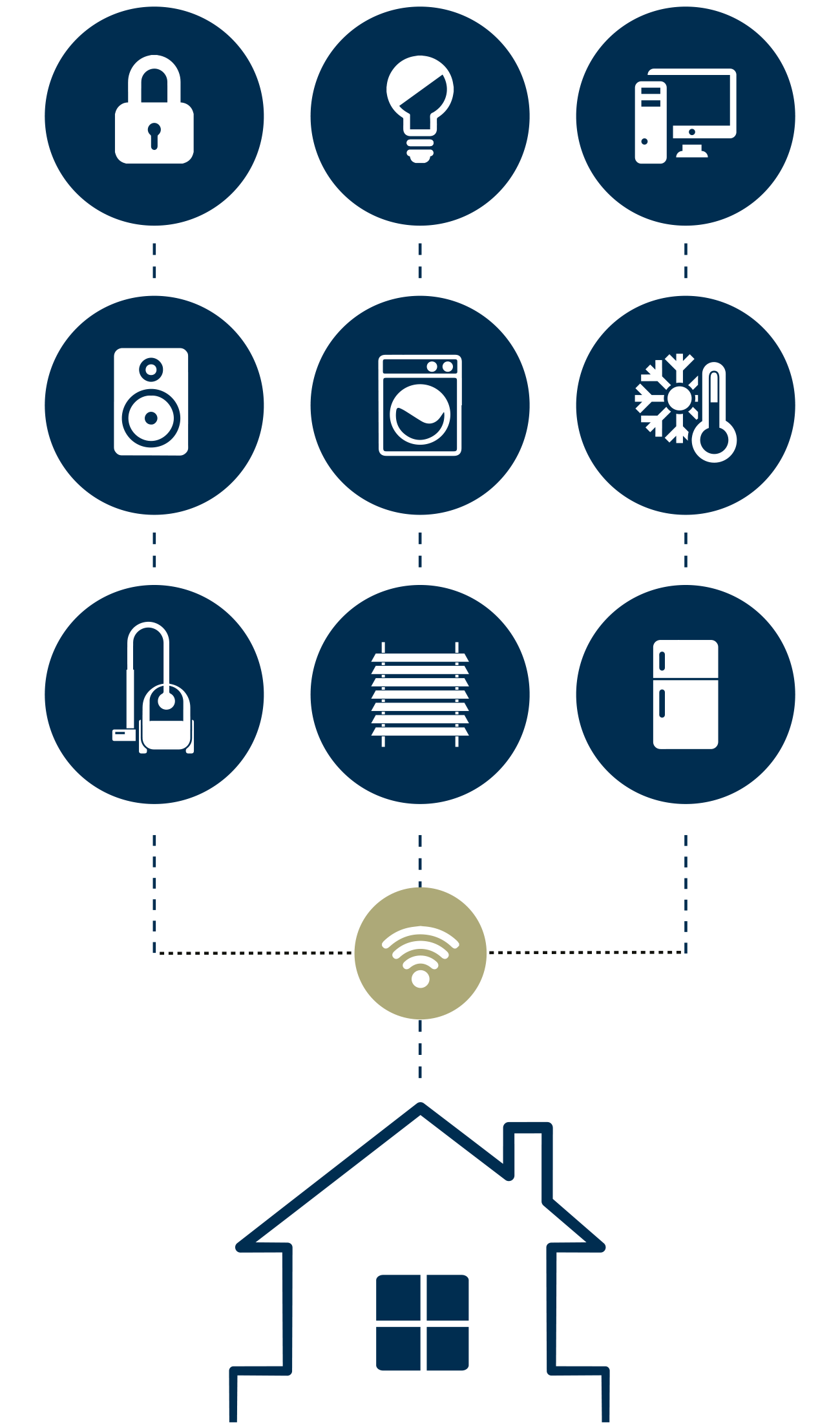 Le niveau d’une maison intelligente dépend grandement du standard d’aménagement défini par l’investisseur. Une installation de base commence par des stores intelligents dans toutes les pièces comme pare-soleil et comme protection contre la vue, et une commande d’éclairage pour les salles de séjour. Un équipement complet comprend l’ensemble de la gestion du bâtiment: compteur intelligent et accumulateurs d’énergie, climatisation et ventilation, système d’accès et dispositifs d’alarme, composants multimédia et divertissement, ainsi que la commande des équipements de bien-être.