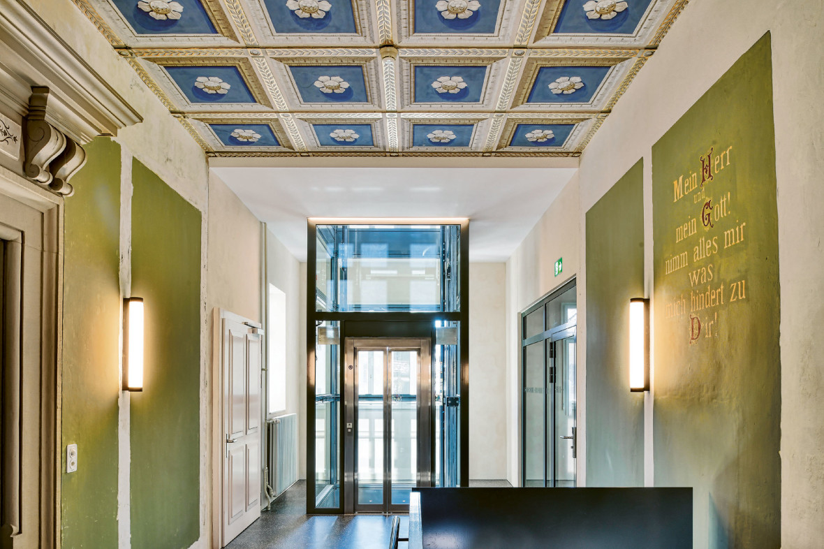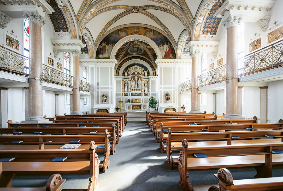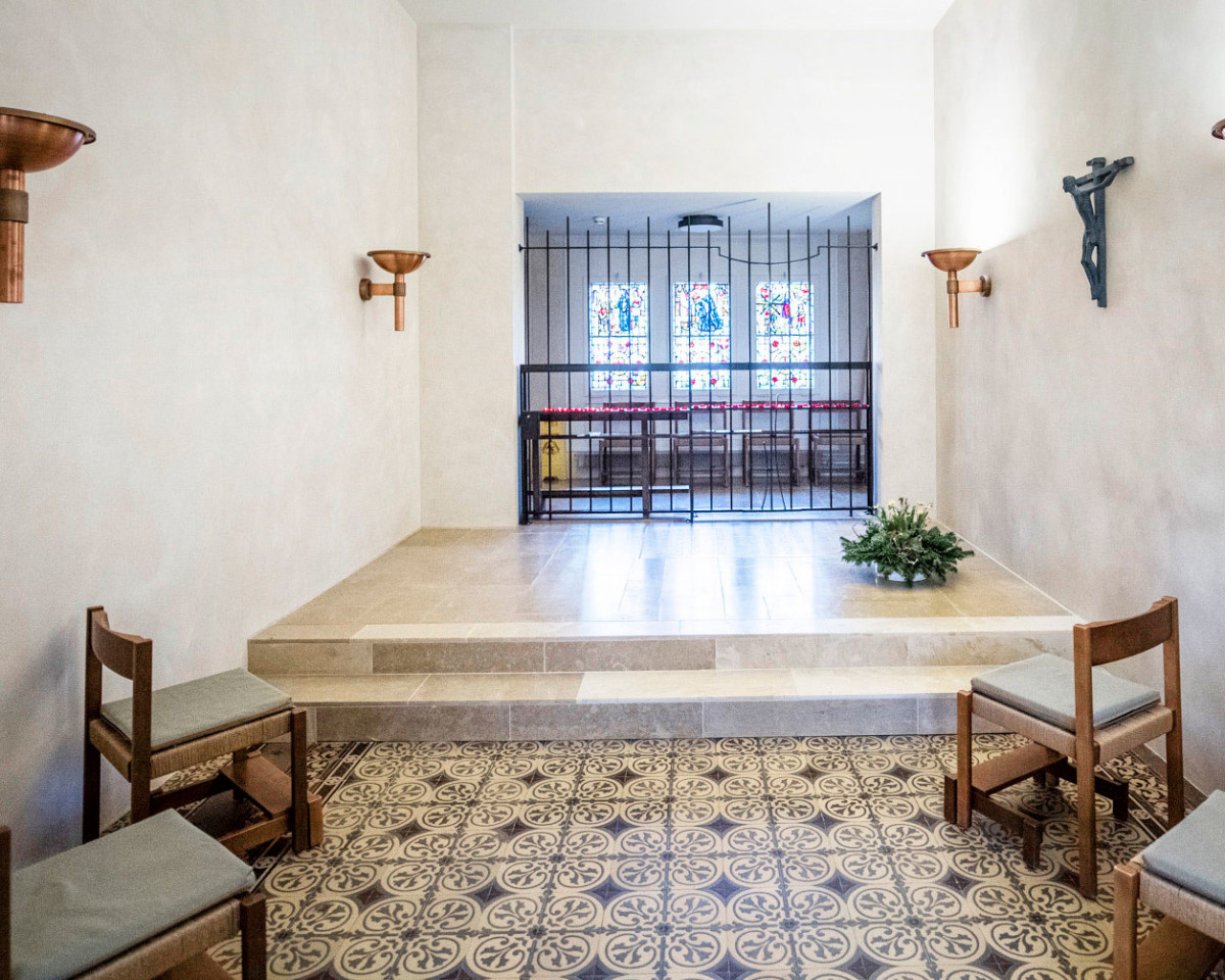 De temps en temps, il y avait de belles surprises durant les travaux de construction. Par exemple, le plafond à caissons en tuiles d’ardoise peintes qui a été mis au jour et restauré. Cornelia Keller est fascinée: «Dans la chapelle d’origine, nous avions un plafond à caisson en bois sombre. Pas très esthétique. Après l’ouverture de celui-ci, un magnifique plafond est apparu, de grandes plaques peintes d’une sorte de marguerites. C’est splendide!» Désormais, le plafond à caisson d’origine peint orne le parvis de l’église et la chapelle au rez-de-chaussée. Cornelia Keller est fascinée par le résultat des travaux. Surtout, parce qu’elle connaît toutes les raisons à la base de cette réussite. Elle trouve magnifique cet espace de quiétude. Mais aussi les escaliers avec le nouvel ascenseur en verre qui allie ancienneté et modernité. Les sœurs aiment incroyablement l’église et le fait de retrouver l’orgue. Mais elles doivent encore s’habituer à plusieurs choses.