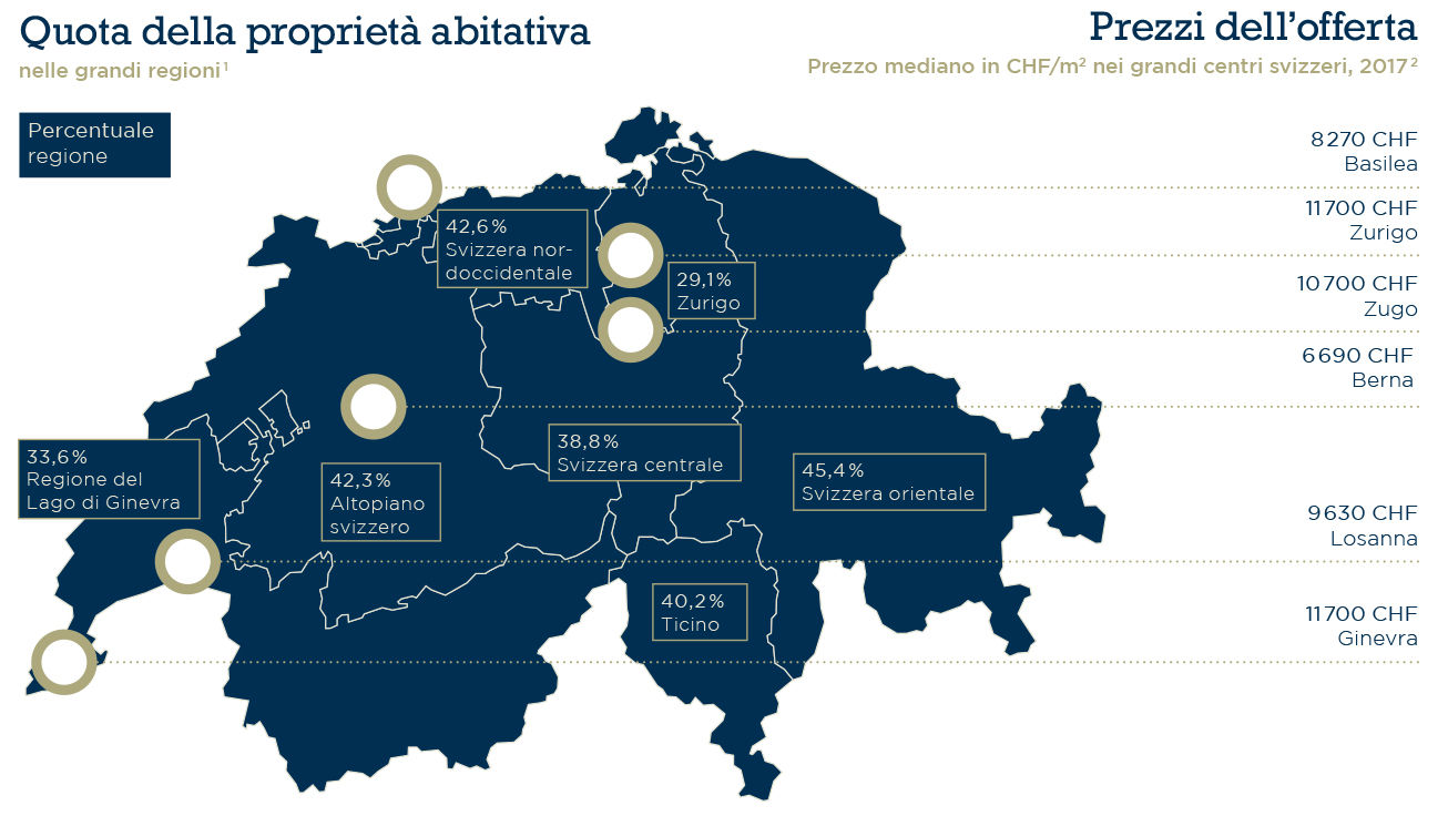 1) Ufficio federale di statistica (UST); 2) Wüest Partner; 3) Wüest Partner, UST (LIK); 4) Wüest Partner; 5) Wüest Partner; 6) Wüest Partner, NZZ;